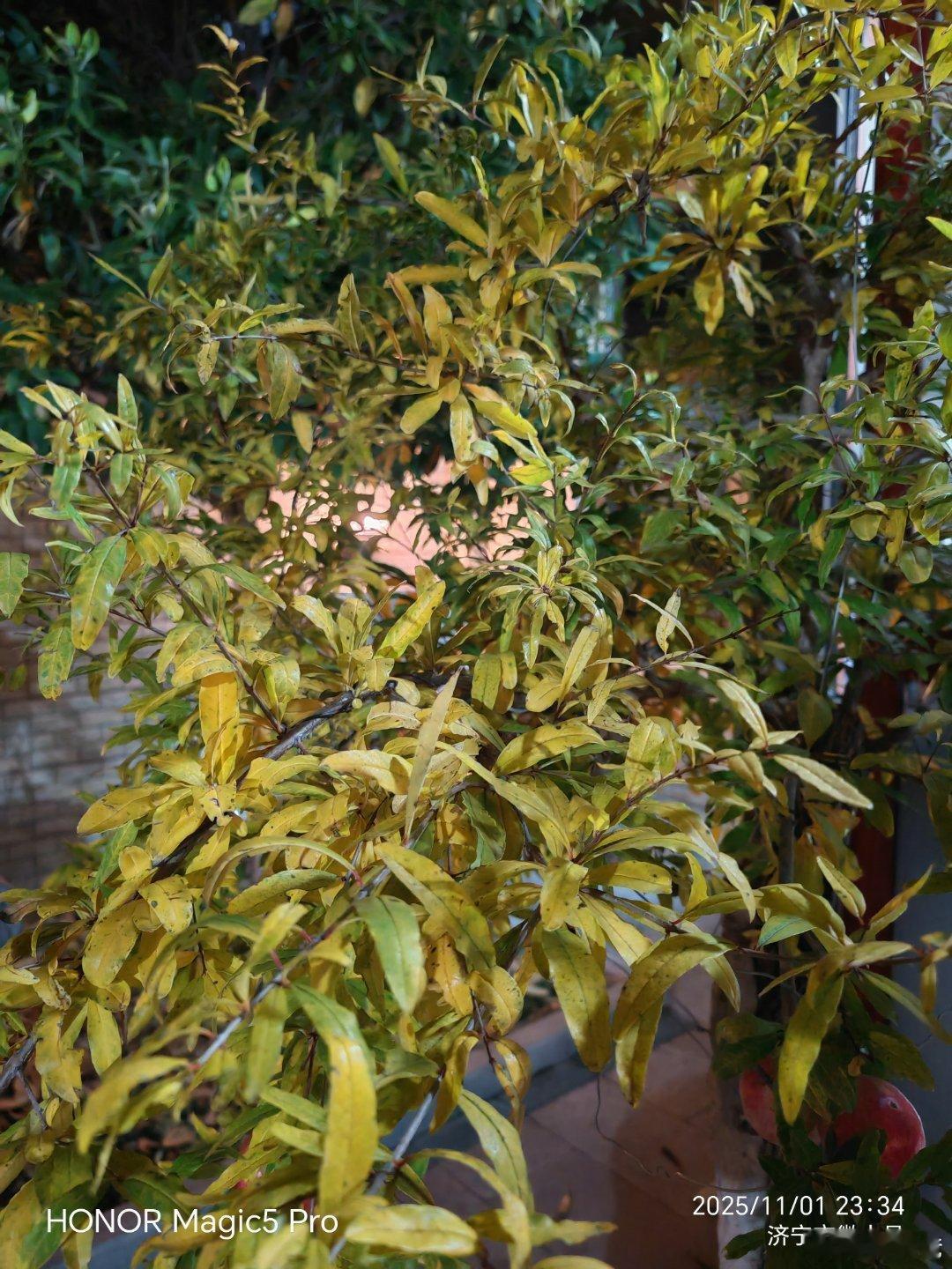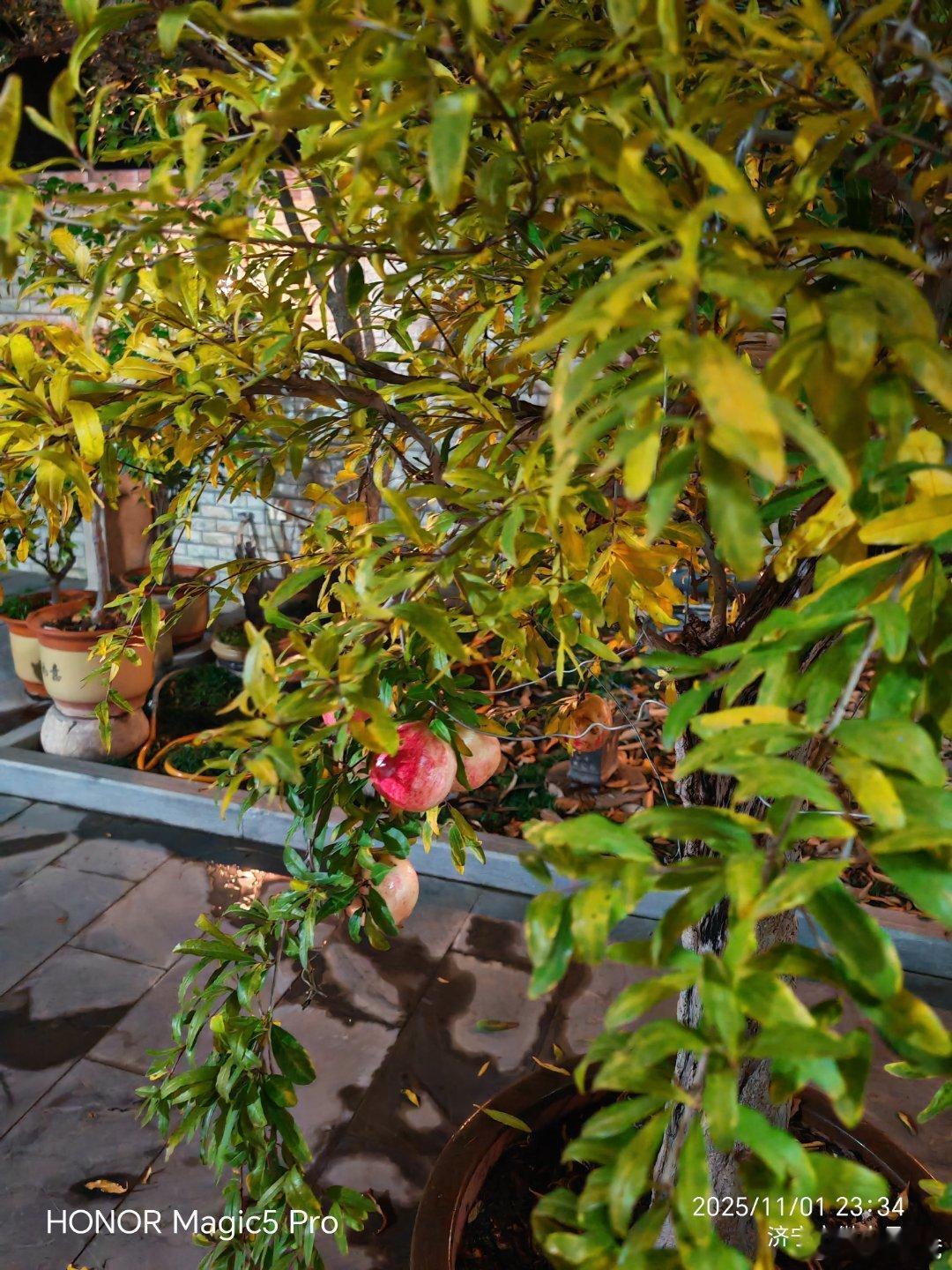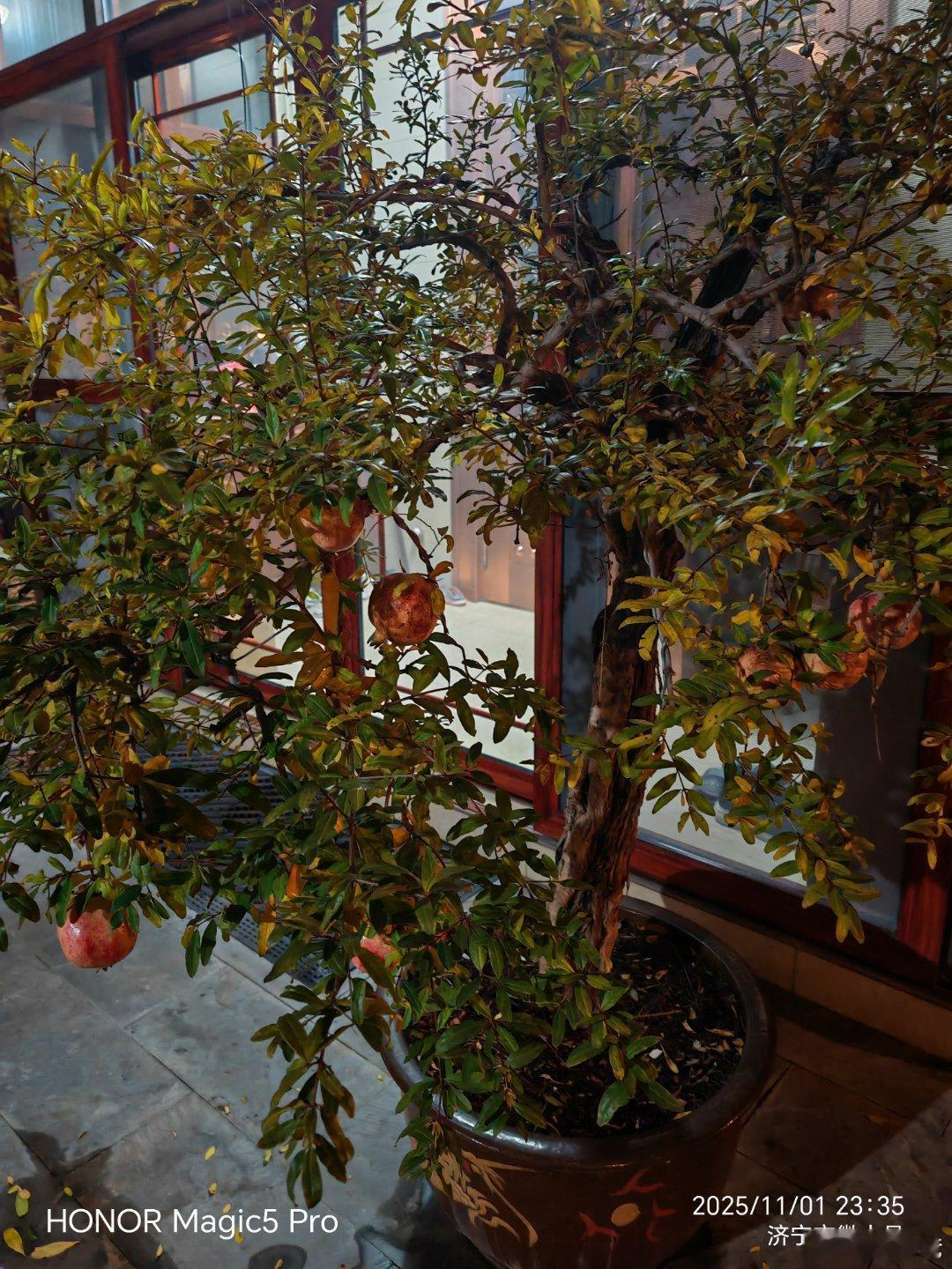 这两株盆栽石榴,已经养了四五年了。我越来越懂它们了。以前是让它们结的多,今年是让它们结的大,明年一定让它们结的又多又大。叶子黄了,开始落了。它们在为新的一年,养精,蓄锐![酷][酷]