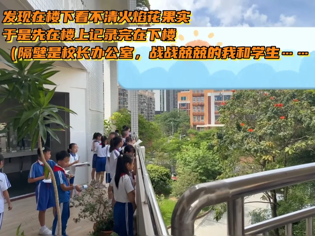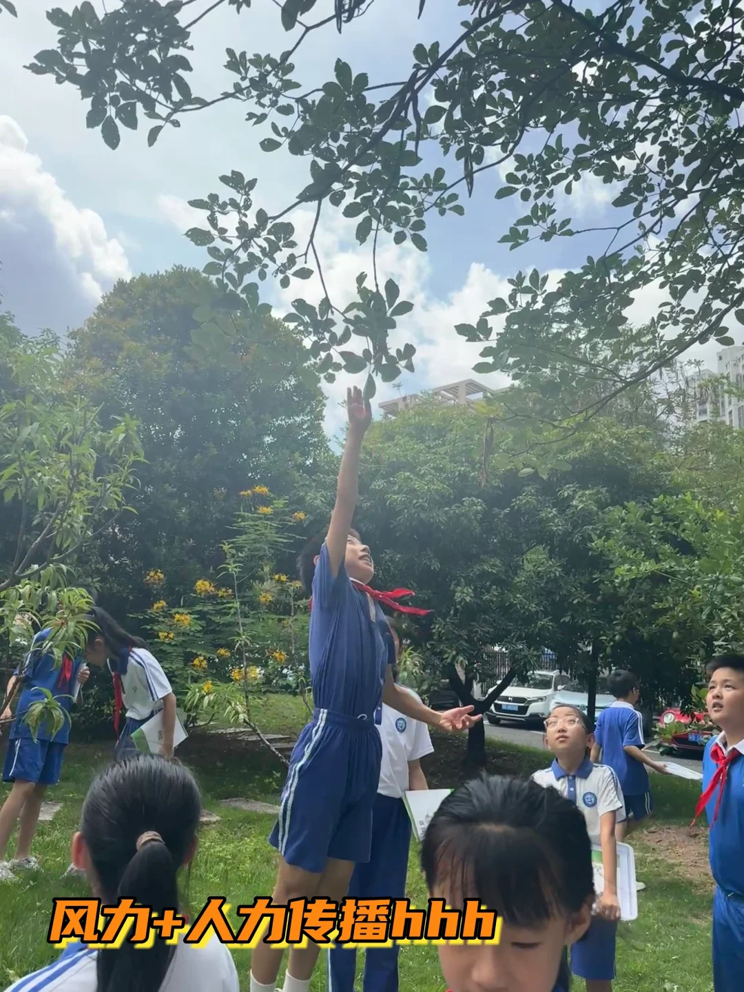 有的班去的时候学校刚做过清扫,学生趴在花圃边“寻宝”找羊蹄甲种子