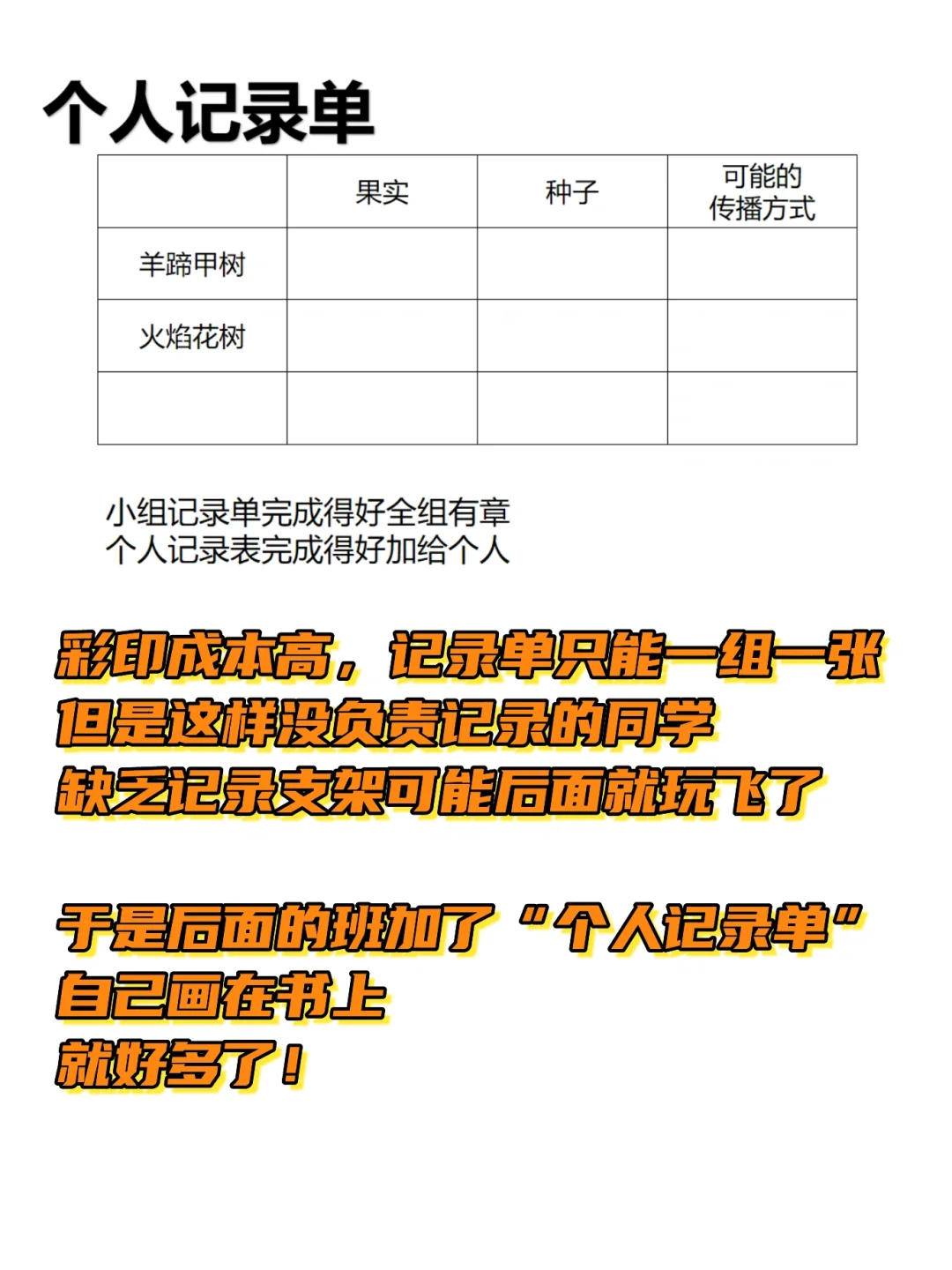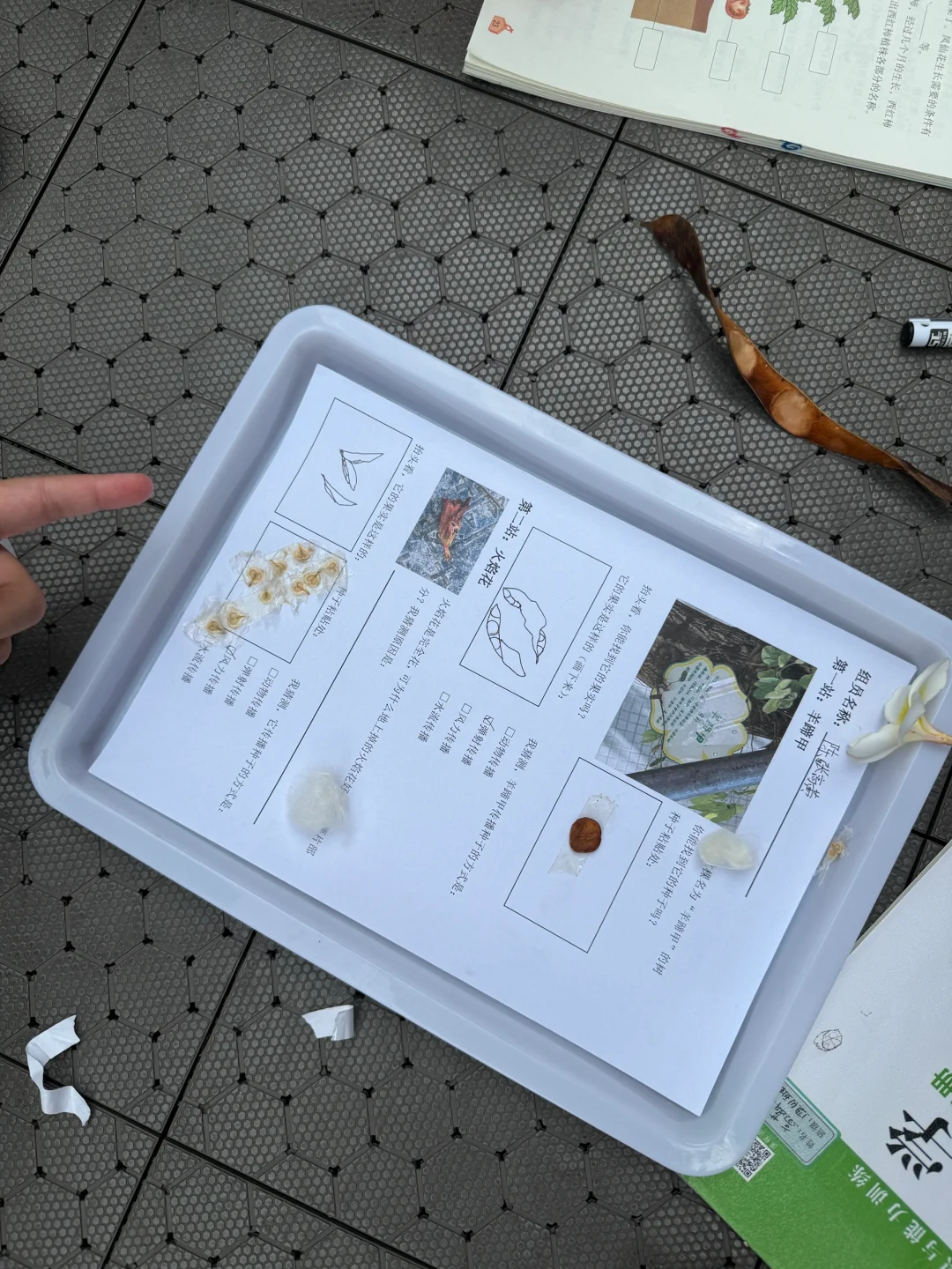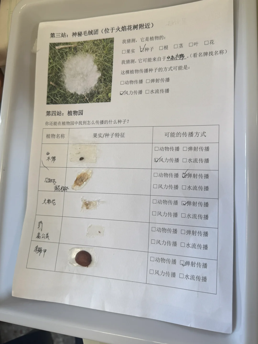 有的孩子一开始能认真记录,后面太兴奋就玩种子去了