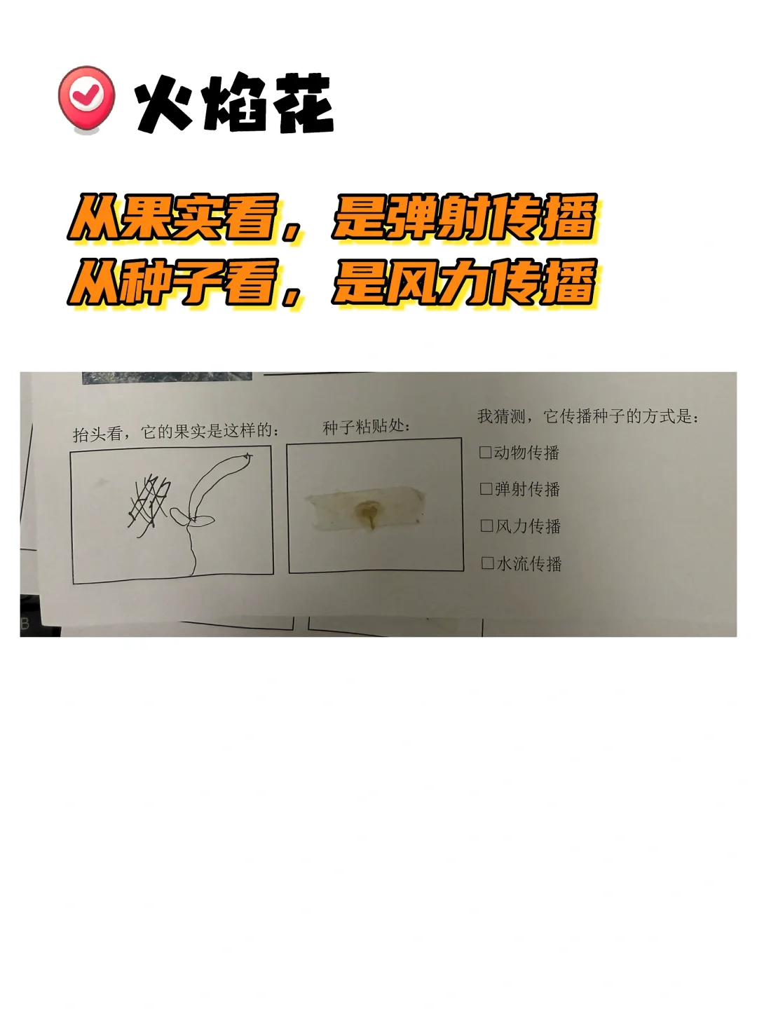 1️⃣火焰花种子很轻→可风力传播