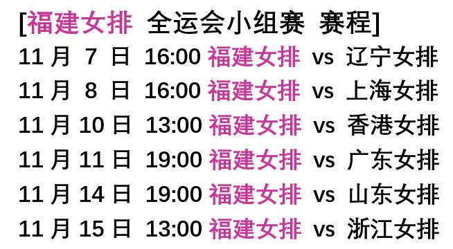 全运会|福建女排小组赛赛程 第十五届全运会福建女排小组赛赛程: 11月7日16
