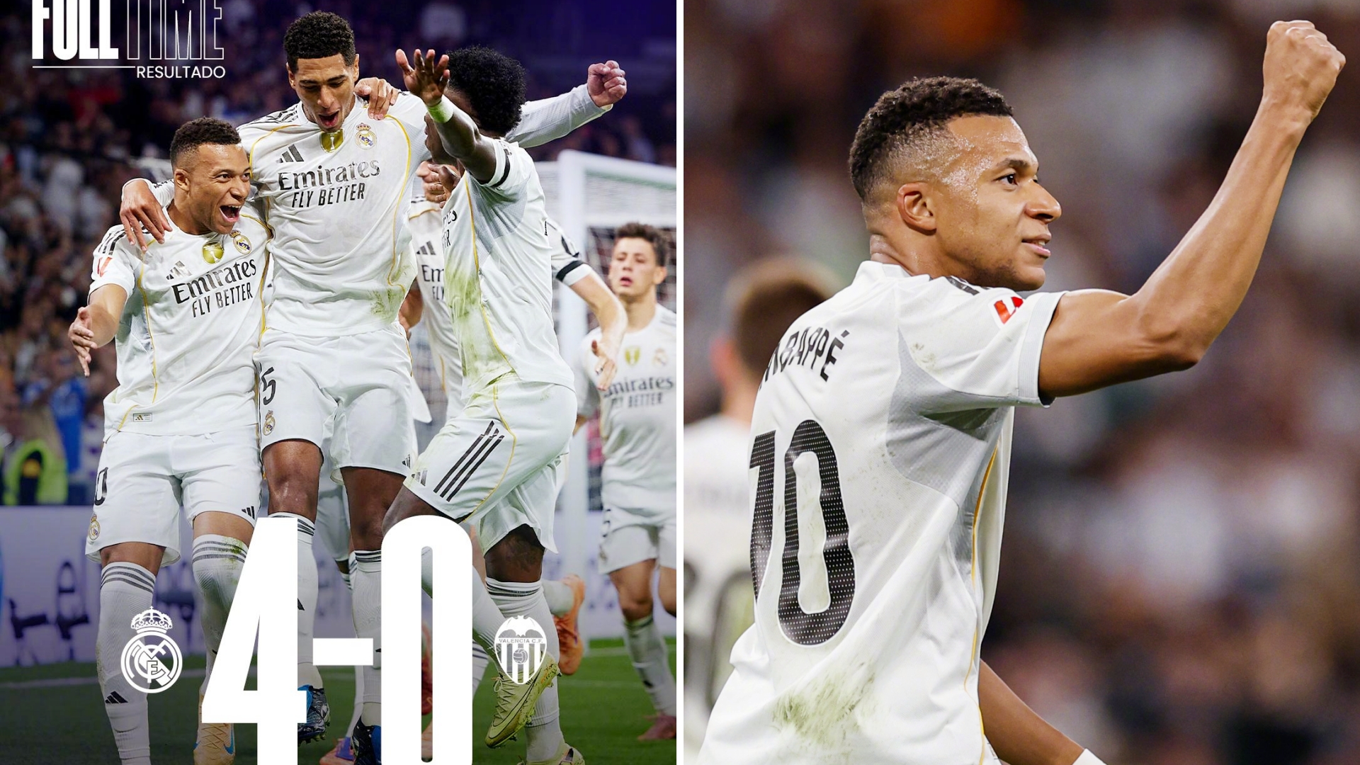 西甲:皇家马德里主场4-0大胜瓦伦西甲,拿下四连胜暂7分领跑。 姆巴佩双响,贝林厄姆破门,A费世界波打进个人皇马生涯首球。