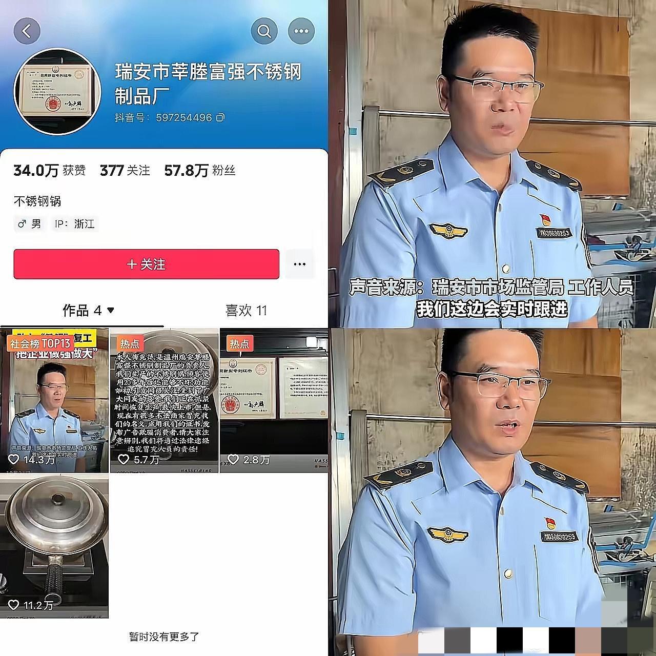 只用三天粉丝破50万,瑞安富强不锈钢厂凭啥在抖音爆火? 这哪是锅火了,分明是大家被劣质锅坑怕了的情绪终于找到了出口! 现在的锅真的太“娇贵”,几十块的用俩月就变形,贵点的也撑不了多久,章丘铁锅当年火成那样,后来也因假货多、不好用跌下神坛。 这家停产十年的老厂不一样,头像直接挂专利证书,锅柄上的专利号能追溯到1995年,网友晒出的老锅用了近30年还不生锈[__LINK_ICON]。 更戳人的是诚意,重启生产线后用料还升级了,厚度从0.8毫米加到1.1毫米,定价却只要60块左右[__LINK_ICON]。这哪是卖锅,是用老手艺给消费者吃定心丸。 其实大家追的不是网红锅,是“能用几十年”的踏实感。 你家里有没有用了超久的老物件?这样的“复古好物”你愿意等吗?
