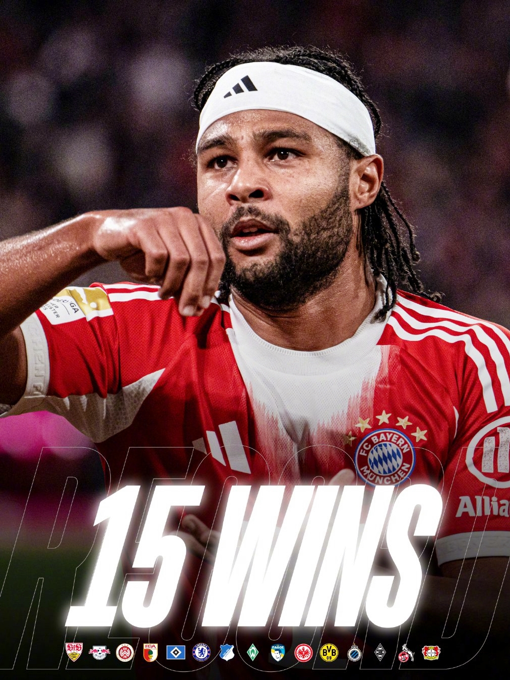 本轮德甲拜仁大胜勒沃库森,球队延续开季以来的无解战绩。 新赛季至今已经各赛事15连胜,超越米兰并再创新纪录。