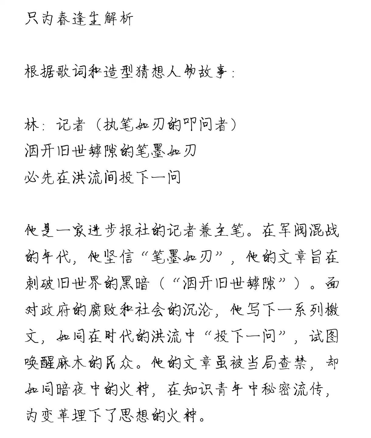 只为春逢生歌词解析…疑似高中阅读理解?? 已经写疯了,写成阅读理解了 上一篇人物和人物关系的解析没啥人看,这里顺便也再放一遍,在后五张 LASER