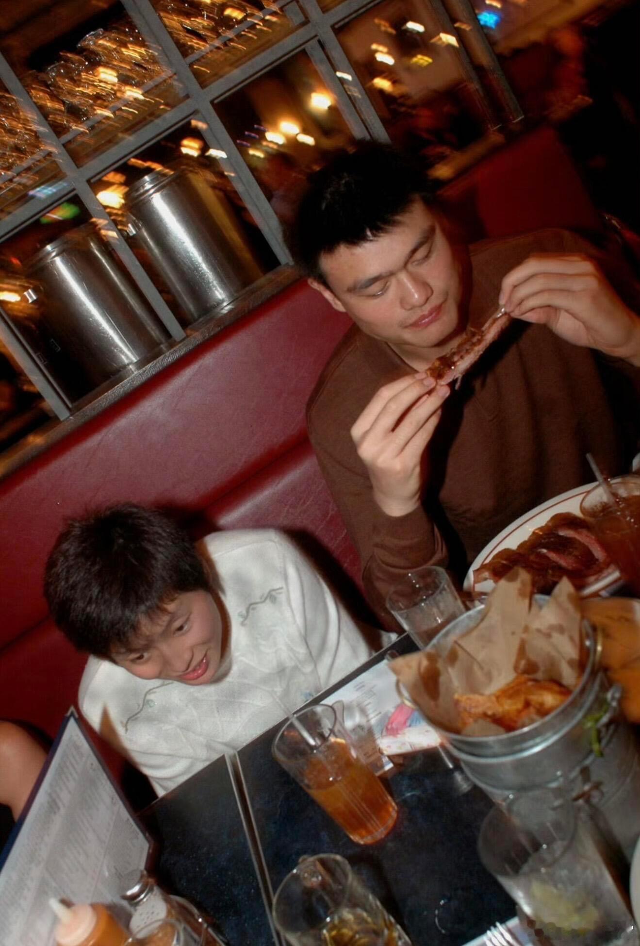 2005年,姚明带着女友叶莉在休斯顿一家餐厅吃饭。