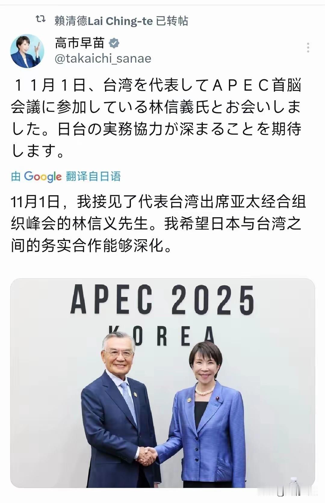 高市早苗与我方领导会晤后,不思悔改,转身去其它房间会见台独分子,充分暴露了其干涉我内政的丑恶嘴脸与恶毒用心! 敌人顽劣,狡猾,多变,不可怕!可怕的是自己没有警惕性!如果对其本质认识清楚,那么,这一切只不过是拙劣的表演而已。 知小礼而无大义,拘小节而无大德,重未节而轻廉耻,畏威而不怀德,强必寇盗,弱必卑伏。镜子不擦不明,日本不打不行。