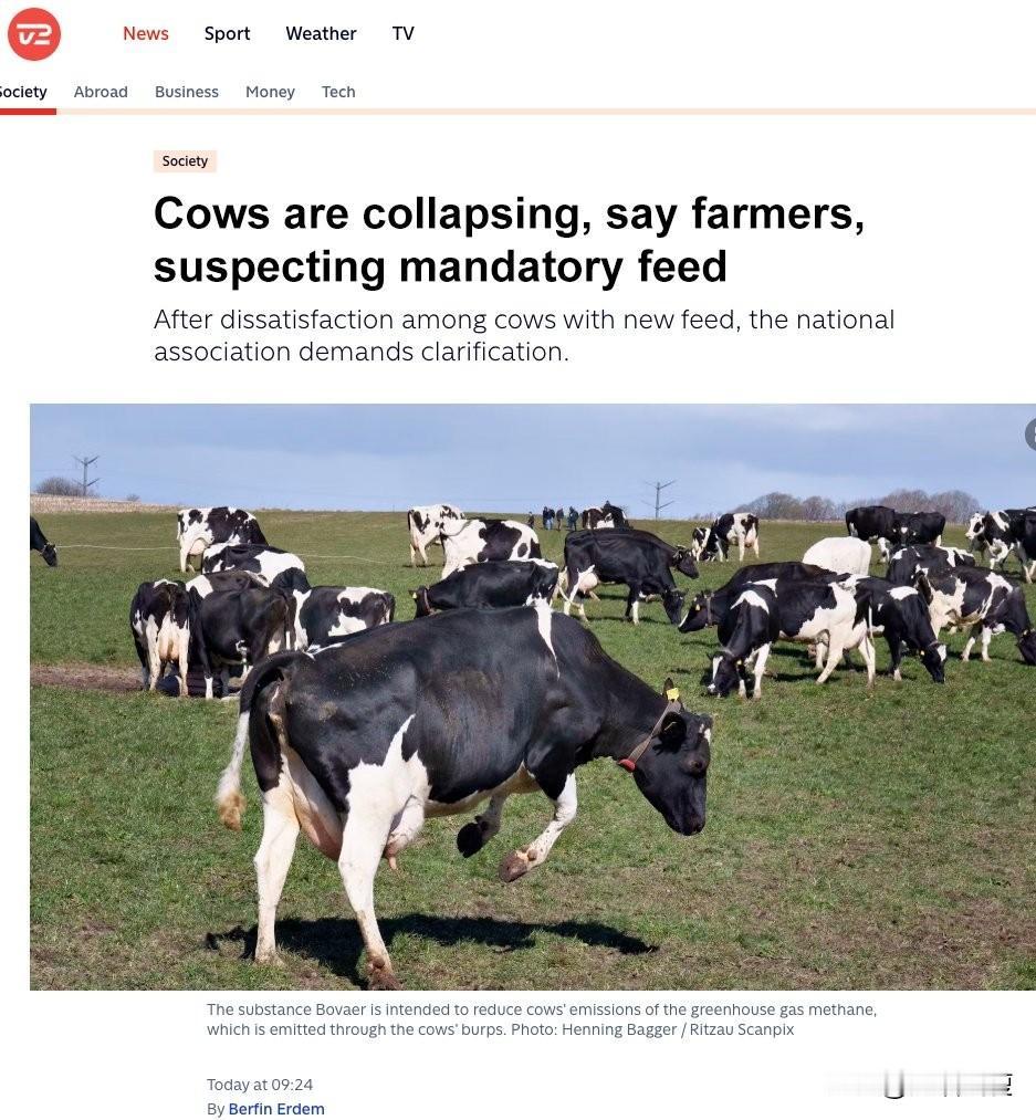 丹麦牛奶也不能喝了。 丹麦十月一日起,强制其奶牛场使用酶抑制剂药物博瓦尔(Bovaer),致使丹麦大批奶牛生病不得不进行人道毁灭。 强制使用的理由,竟然是为了减少奶牛的排放气体,一切都是为了“绿色环保”。 “在一些案例中,丹麦农民们尝试从牛饲料中去除这种物质,发现牛的情况有所好转。但当他们之后重新添加这种物质时,问题又出现了。” 那问题来源就是博瓦尔。这玩意儿还是强制对奶牛使用的,也就是说丹麦牛奶以后全有这玩意儿,离谱。