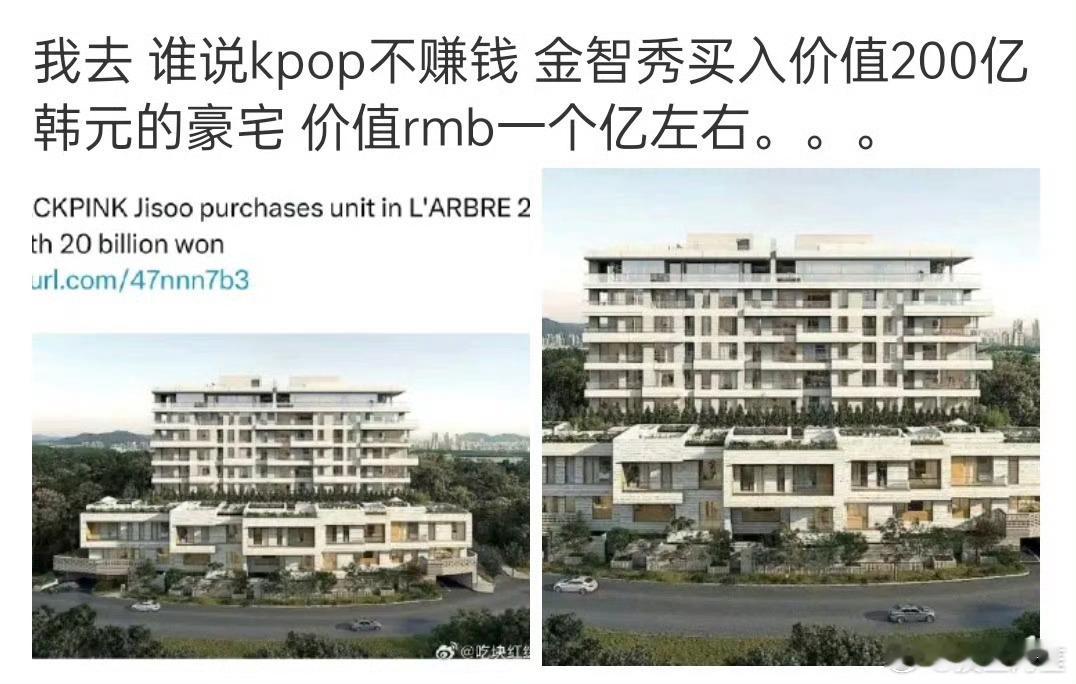 black pink 是在世界范围内都影响力巨大的爱豆啊,估计一个亿一年就赚到了……只要能参加世界巡演的爱豆就没有太穷的,这房子我估计宋雨琦也买得起