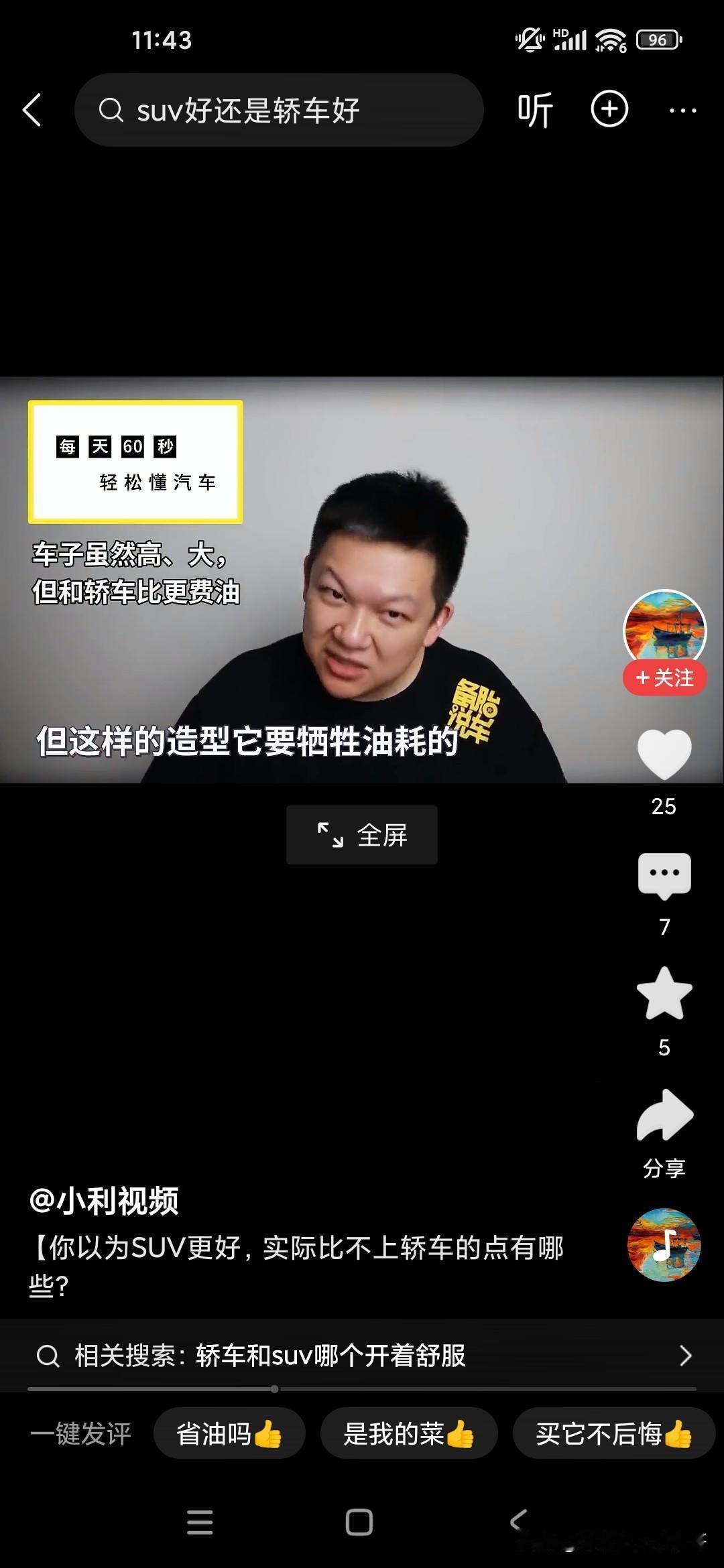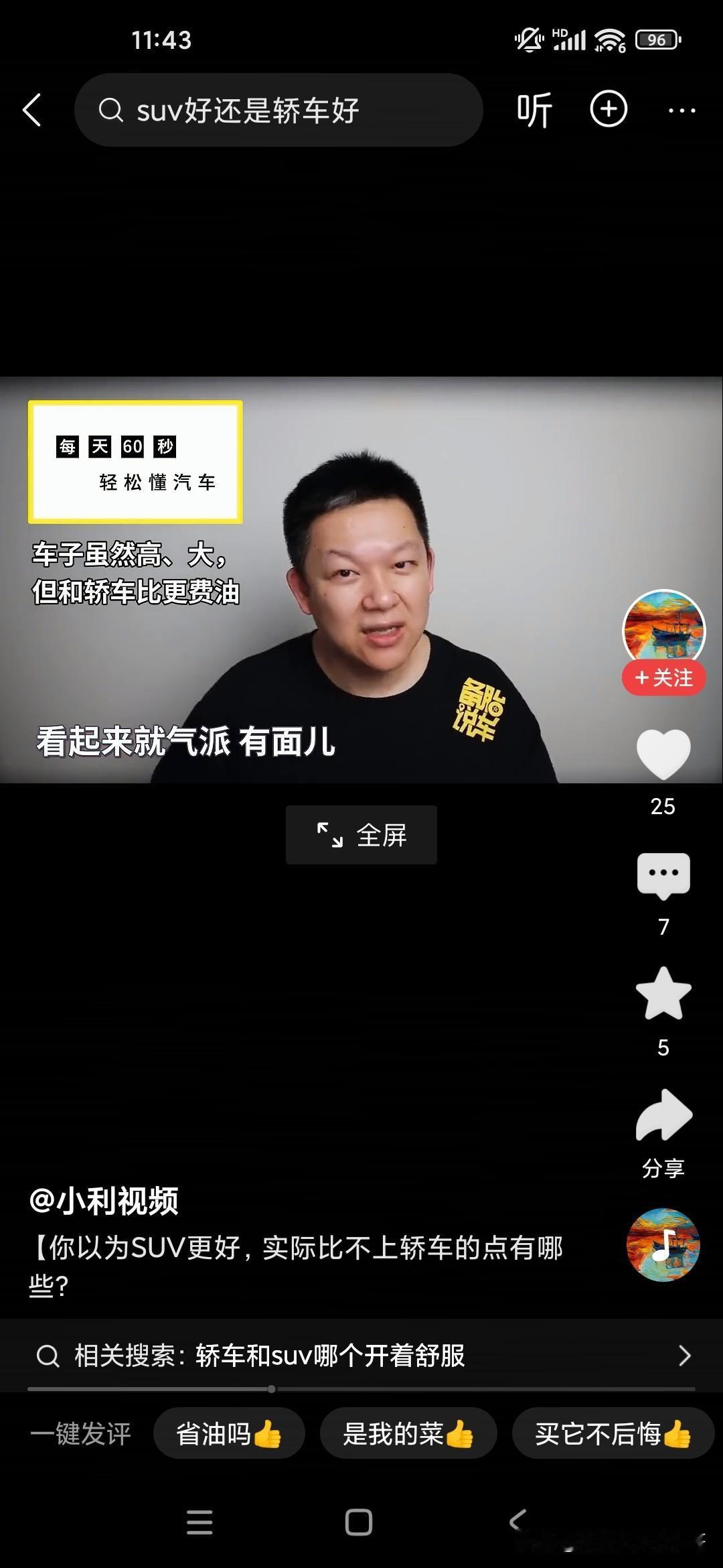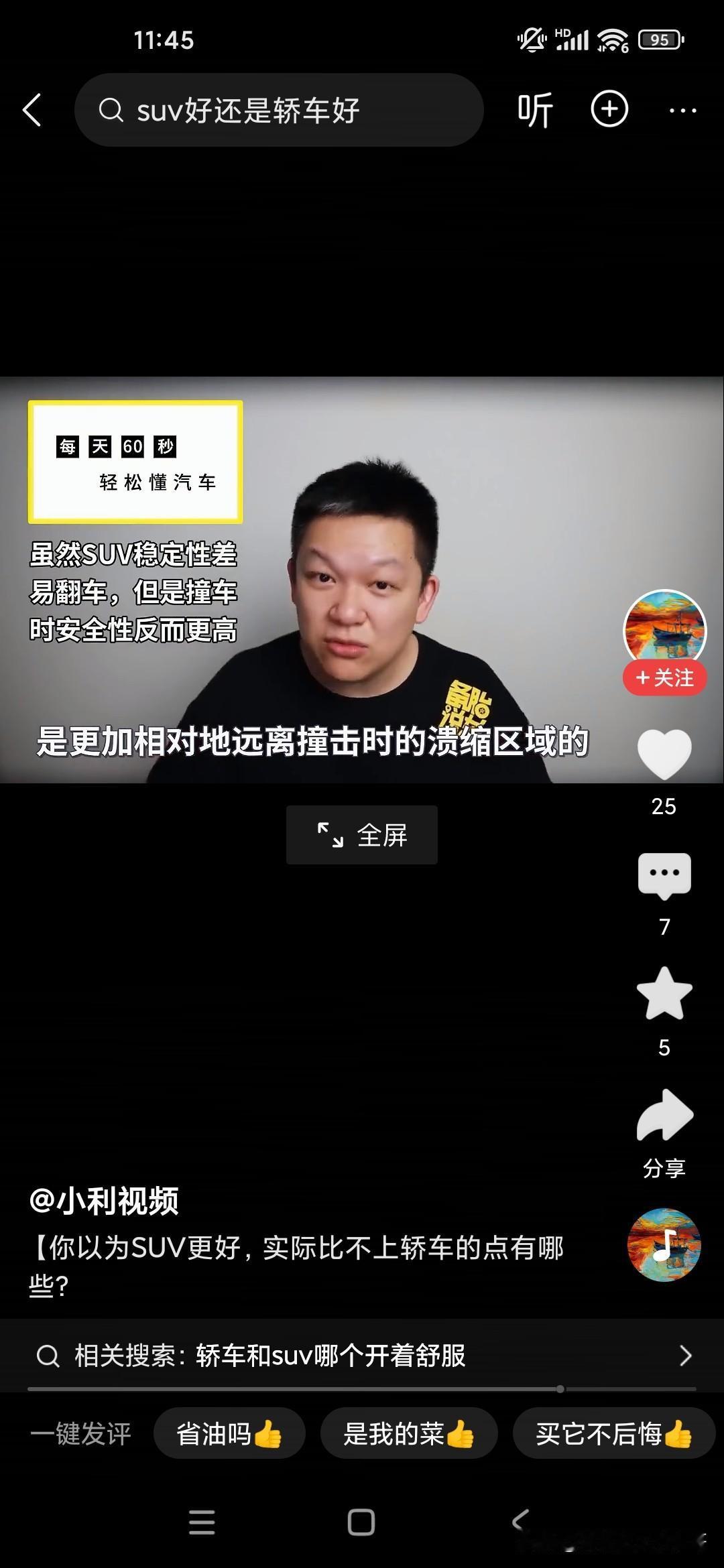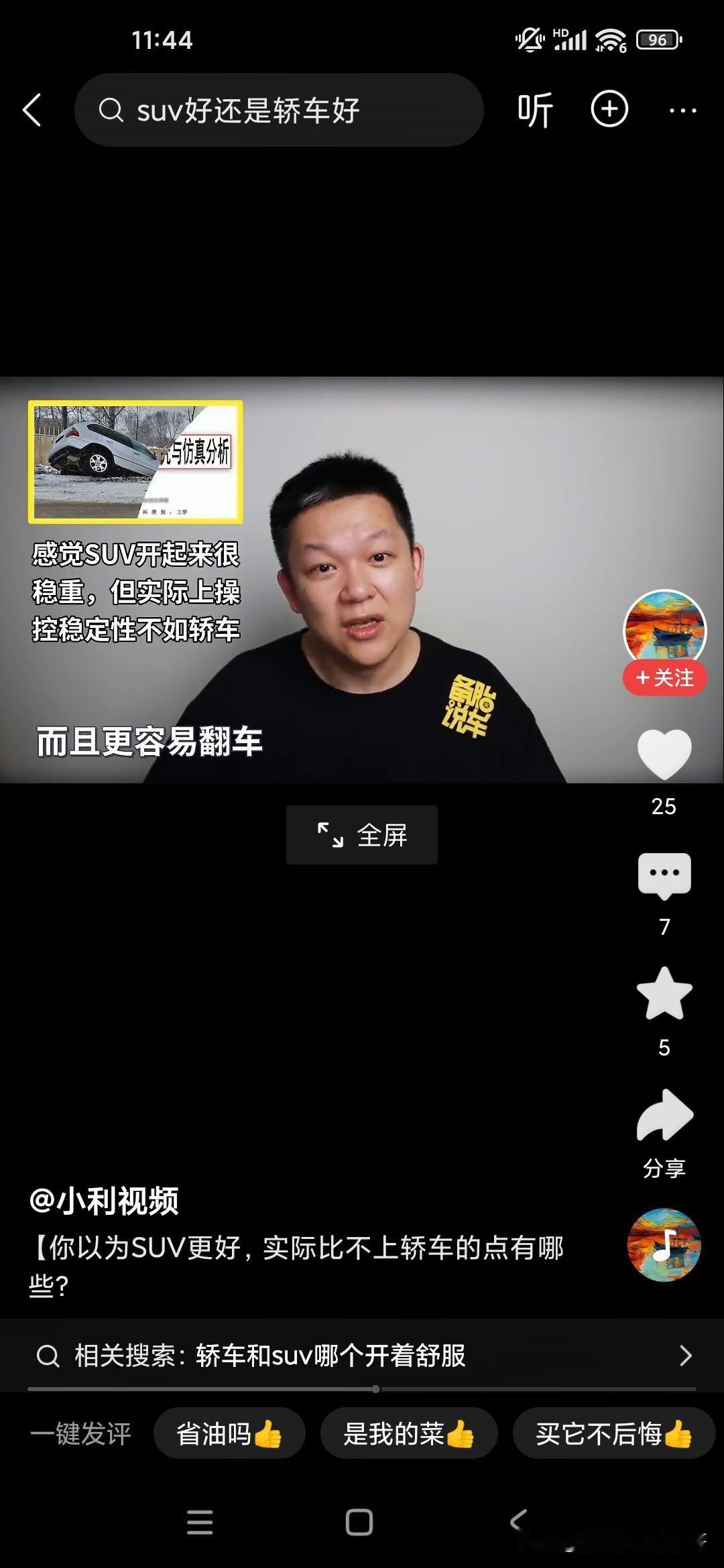 不知道你是不是更喜欢SUV,因为SUV车身比较大,装的行李比较多,通过性比较强,而且的话更加安全一些,因为你的座位更高一些,如果发生碰撞的话,可能一般来说不会伤到你上半身,我们主要是脑袋还有躯干这两个主要部位,其他的话都是四肢伤到的话也只是轻伤,但是如果一旦头部受到撞击的话,那肯定是受不了的,但是SUV的确也有它的缺点,耗油量比较大,因为车身比较大风阻比较大,第二的话是车身比较高,容易侧翻,第三的话是稍微慢一点,有的通过性也没有像想象中的那么大,当然看个人偏好,有的人喜欢稍微大一点的车辆看着比较气派,有的人喜欢稍微小一点的,油耗稍微小一点!完全看个人经济能力和个人喜好!