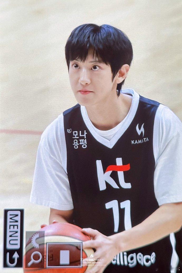 朴灿烈篮球照好嫩 今日出现在韩职蓝赛场的朴灿烈,他为水原KT队特别试投。这个灿烈也太嫩了吧!