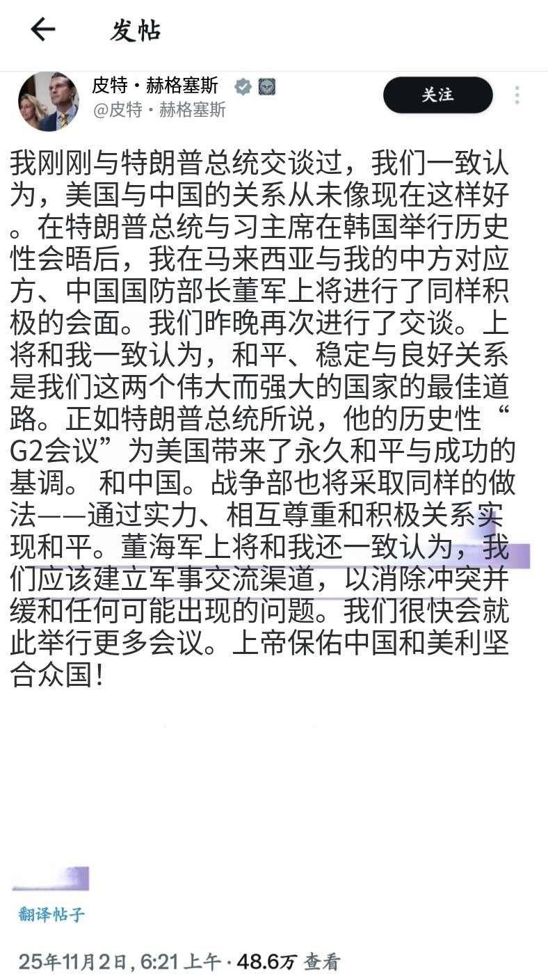 美国国防部长赫格赛斯(Pete Hegseth)周六在马来西亚呼吁东南亚国家加强海上防卫力量,共同应对中国在南海日益“破坏稳定”的行动,强调美国将提供技术与合作支援,确保区域国家在面对挑衅时“不再孤立”。 这货变脸可真快!深得特大变脸王统领的真传!