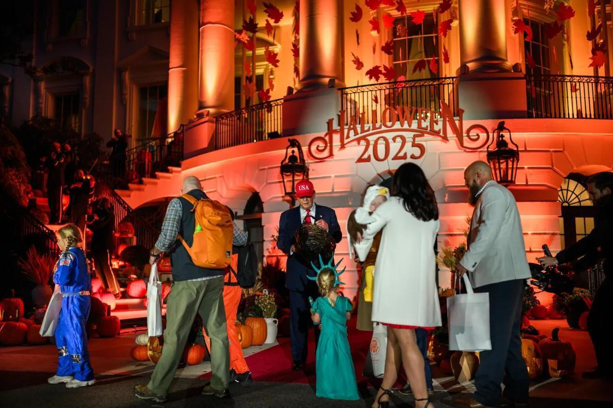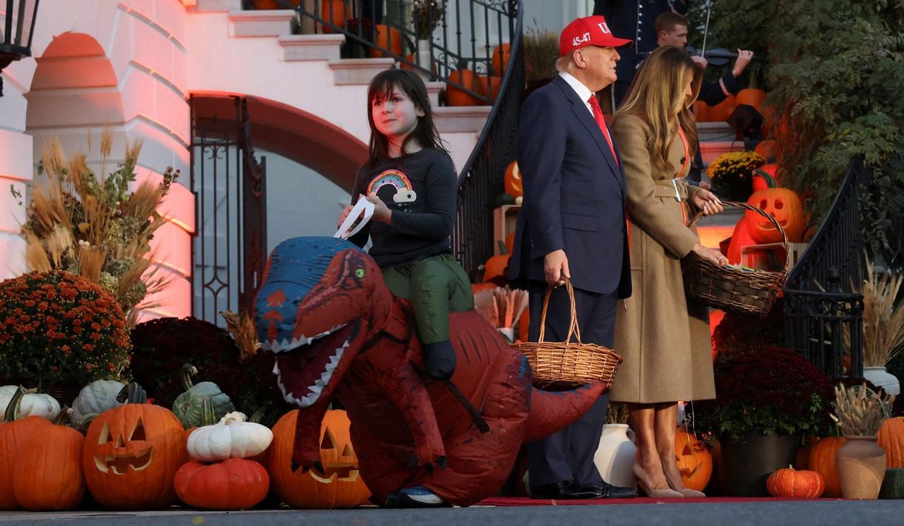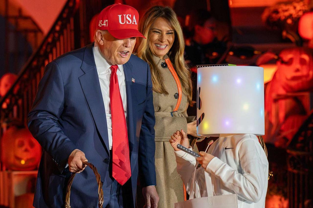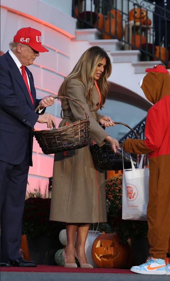 万圣节,特朗普夫妇白宫发糖,但熊孩子们玩成了大型恶搞秀——最出圈的造型,是个扮脏马桶的孩子,头戴马桶圈、背后还贴了一张“超宽负载”的标语。有一家人把手推车改造成麦当劳得来速餐厅。 白宫万圣节是惯例,一百多个盛装打扮的孩子们来找总统夫妇要糖,有寄养家庭的孩子,也有当届政府官员家的孩子,白宫女发言人也卡罗琳,被拍到抱着孩子排队。 不过梅兰妮娅显然没打算跟着玩变装,她直接穿了一件超贵的玛尼大衣,全场唯一的冷脸超模风。