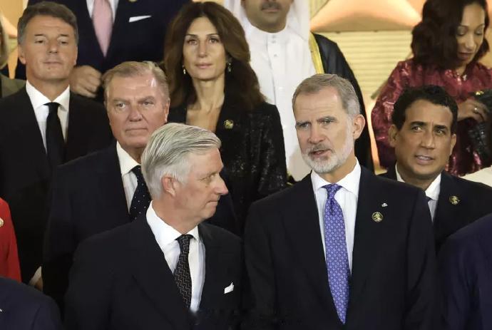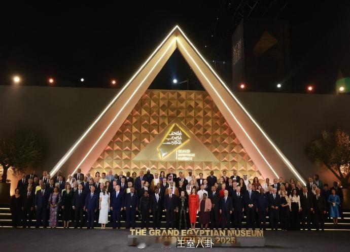 多国王室成员出席大埃及博物馆落成典礼。这座博物馆又被称为“第四座金字塔”,坐拥吉萨金字塔全景,专门展示历经五千年三十个王朝的法老们的风采,耗资超过十亿美元,历时二十年才建成 埃及方为表重视,应该把能摇的人全部摇来了,这里引用引用周迅名言就是:“好多人啊” 第一排西装男能找到三个欧洲王室君主:西班牙国王菲利普六世、比利时国王菲利普和摩纳哥亲王阿尔贝二世 两位王后:浅蓝色为丹麦王后玛丽,红色为约旦王后拉尼娅 第二排能找到刚退休一个月的卢森堡亨利大公,边角还可见约旦二公主萨尔玛、泰国二公主思蕊等