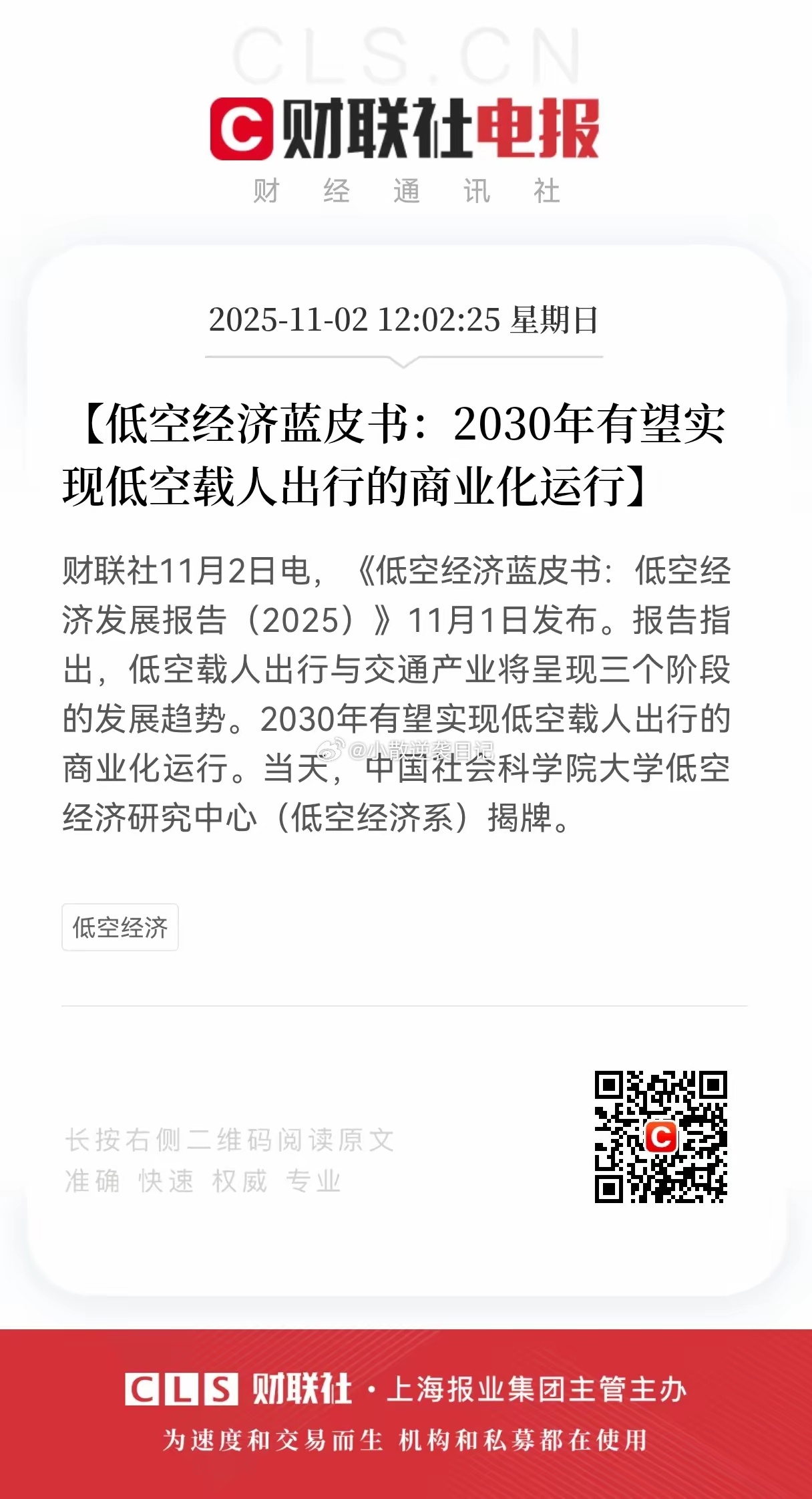 低空经济作为潜力巨大的新兴赛道,近日迎来关键政策信号——《低空经济蓝皮书》正式发布,明确提出2030年有望实现低空载人出行商业化运营的核心目标。这一基于行业数据与技术趋势的专业预判,为万亿级市场的发展划定了清晰路径,标志着低空经济从技术探索迈向规模化落地的关键转折。