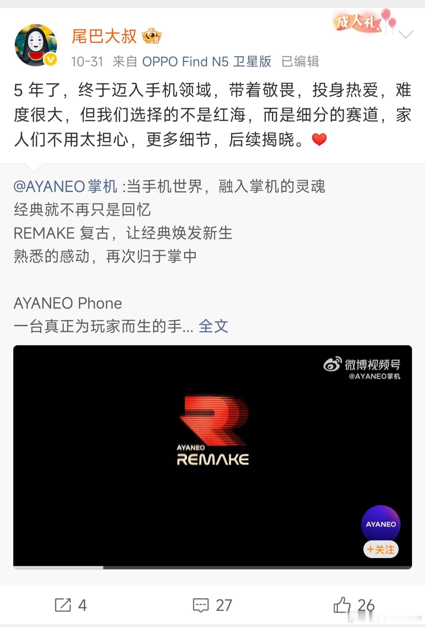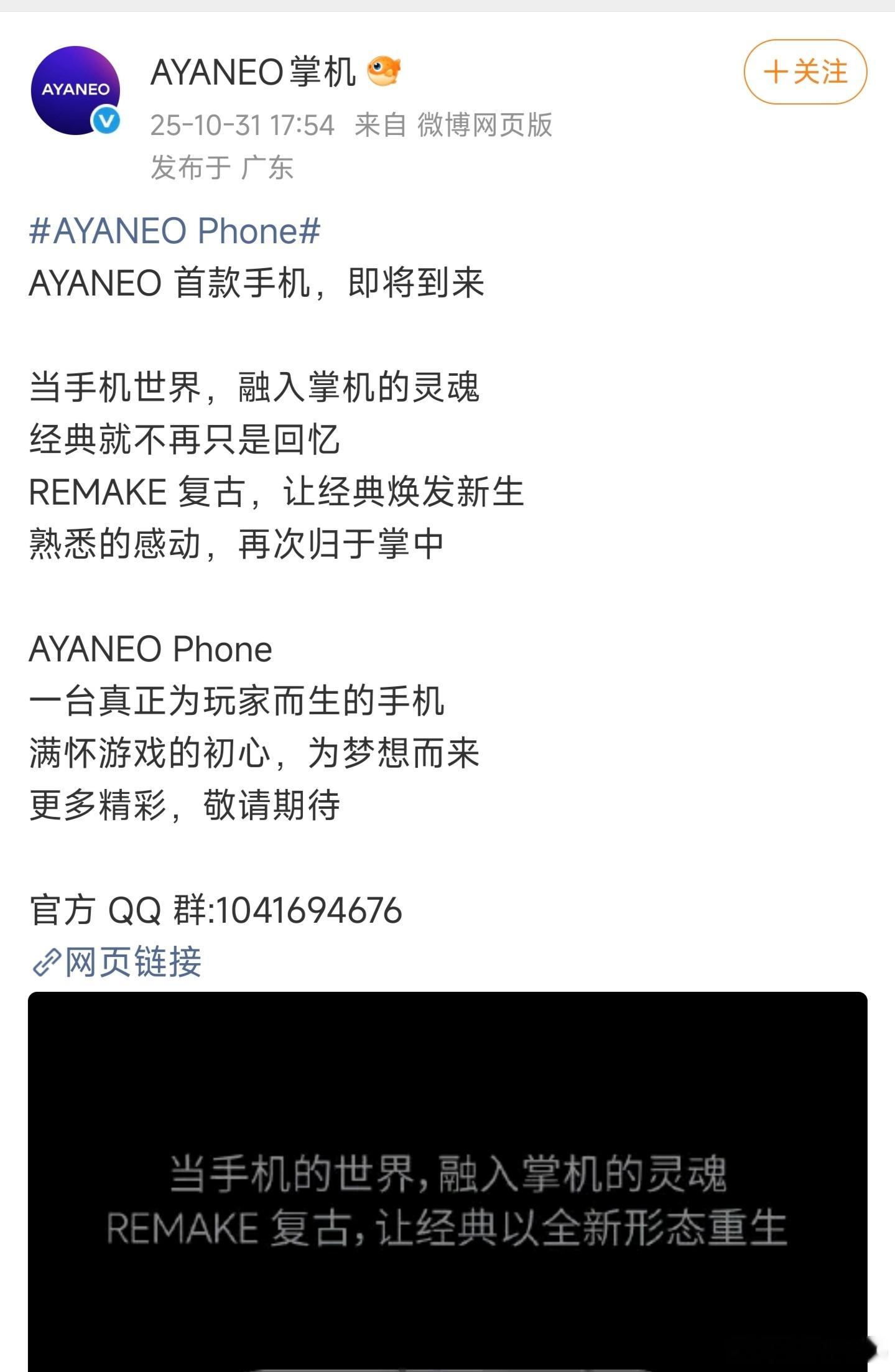 AYANEO要出手机了,应该是手机掌机二合一,细分赛道。