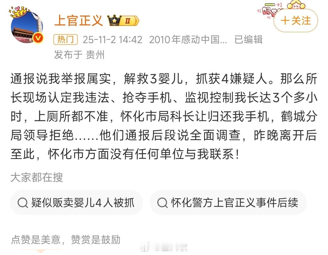 湖南警方通报发现疑似贩卖婴儿如果上官正义所反映的问题属实,当地所谓“舆情管控”是