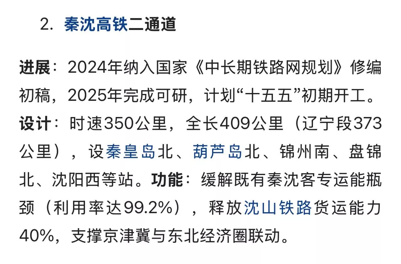 为何秦沈高铁二通道的线路规划始终犹豫不决? 这条高速快速路是国家“十五五”高铁规