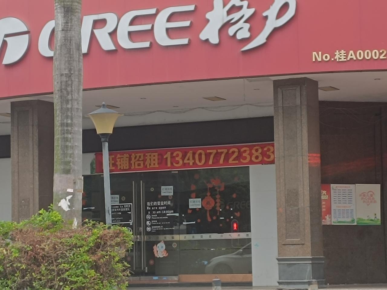 格力也会有干不下去的店,这是南宁人民路口的一间店铺,位置相当好,正对大马路口的转角处,可以说是铺子王了,最好的铺面+最牛的品牌,结果还是倒闭了,招牌也没拆掉,玻璃门贴着业主招租,横幅都已经发旧了,看起来已经空着很久了。