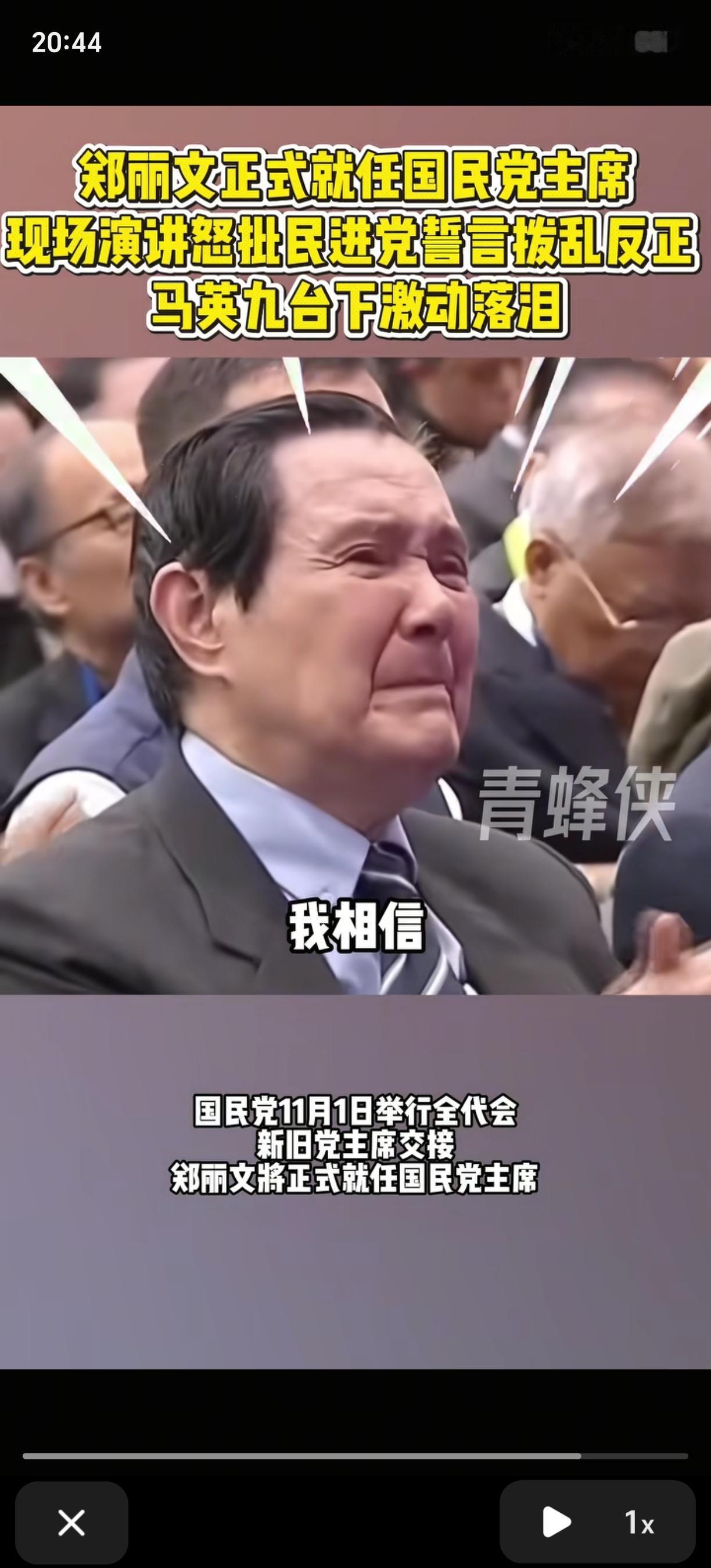 郑丽文做梦都想不到,她接任国民党主席这天,最吸引眼球,最激动引人瞩目的不是她,而是马英九先生。不是因为别的,是他在看到郑丽文正式接棒后,一边鼓掌,一边泪流满面,镜头一扫就全拍下来了。 台下蓝营元老们脸色各异,有人悄悄抹泪,对着马英九的方向轻轻点头,显然共情了这份对党派的牵挂;也有人眉头紧锁,掏出手机快速打字,像是在跟身边人吐槽这场面不合时宜。 年轻派系的代表们则显得有些尴尬,互相交换着眼神,有人低头整理文件,避开镜头对马英九的聚焦,仿佛觉得这一幕抢了新任主席的风头。 支持郑丽文的阵营里,有人忍不住小声抱怨,说马英九这是故意抢戏,不给新主席留面子;也有人私下感慨,马先生是真的放不下国民党,这份情怀让人动容。 媒体区更是忙作一团,记者们扛着相机对准马英九,快门声此起彼伏,原本该聚焦郑丽文的提问环节,大半问题都变成了“如何看待马前主席的情绪失控”。 郑丽文在台上发表就职演说时,目光几次掠过马英九,语气依旧沉稳,但紧握的拳头还是暴露了她内心的不平静。 活动结束后,马英九被记者团团围住,面对“抢风头”的质疑,他红着眼眶解释,看到国民党顺利完成新老交替,想起多年来的起起落落,情绪实在没忍住。 这番回应并没有平息争议,反而有人翻出他过往的公开言论,指责他言行不一;也有不少支持者站出来力挺,说真情流露不该被过度解读。 郑丽文的团队则对外表示,尊重马前主席的情感表达,国民党未来会团结一心,共同推进工作,但明眼人都能看出,这场小风波已经在党内埋下了微妙的伏笔。 马英九的泪水可能是对郑丽文最大的认可,你们觉得对吗? 来源:青蜂侠 2025-11-1