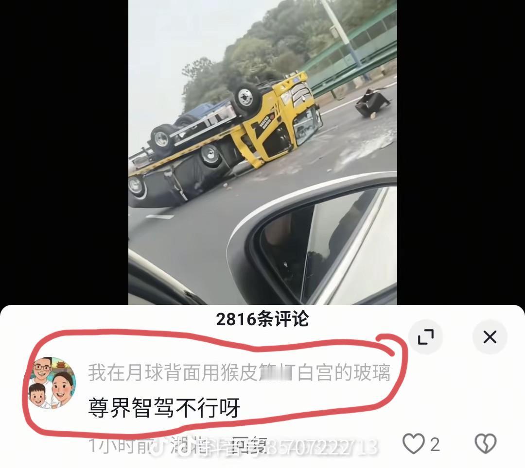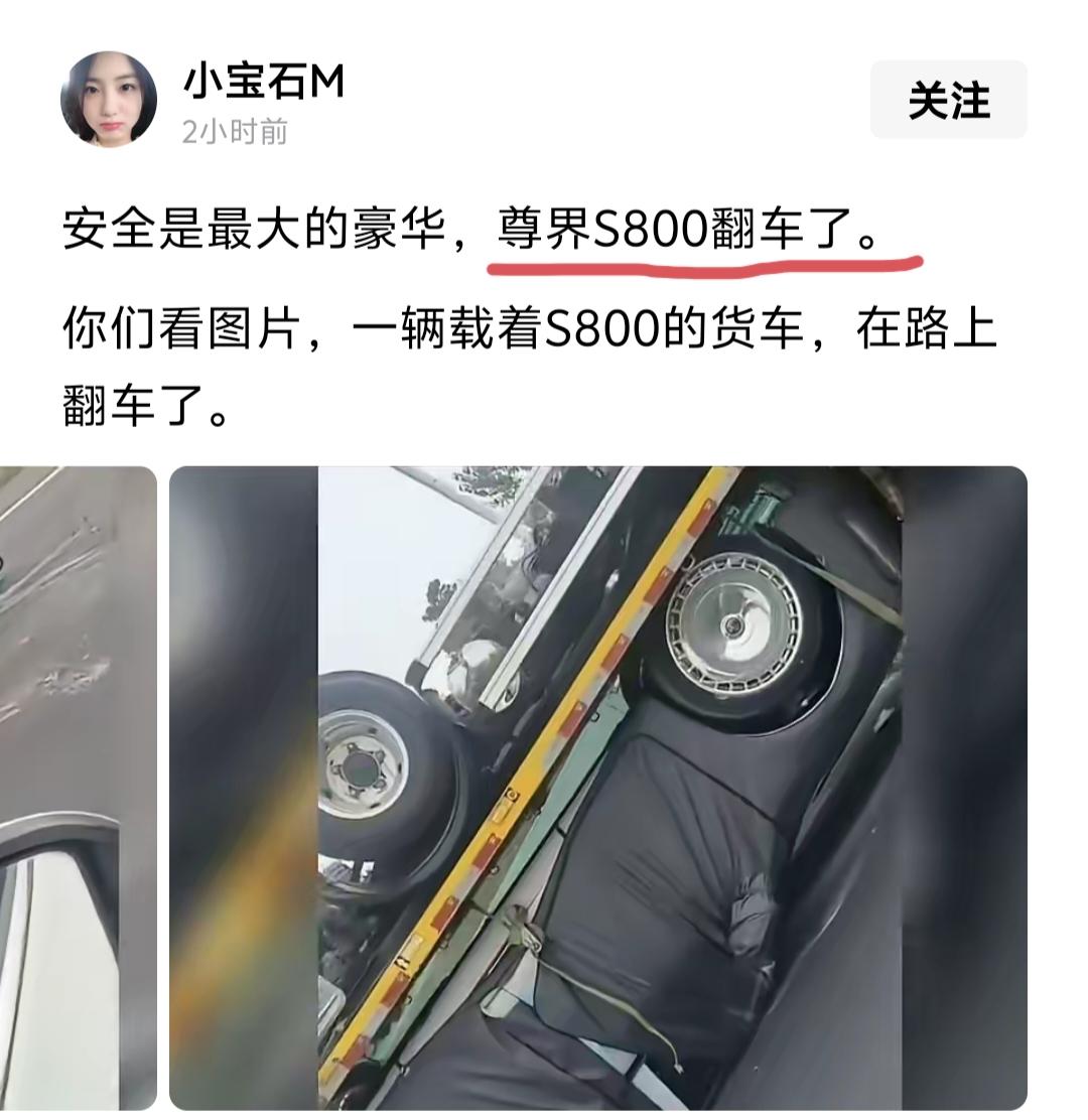 明知道板车翻了跟尊界没有什么关系,还要抓着这个来抹黑尊界,只能说明尊界实在是让他们找不到槽点,黑不动了。没想到,最后反倒成为对尊界质量的神助攻。 一辆运输尊界S800的单板挂车在路上不知道什么原因翻车了,车上用黑色专用车衣包裹得严严实实的尊界被挂车车斗压在底下,有人将视频和照片上传到网上,到处说尊界翻车了。甚至还有人无视这是运输车翻车的事实,在评论区带节奏说尊界搭载的华为智驾不行,所以导致尊界翻车了。真服了那些黑子了,这是一辆刚从厂家发运的尊界新车,连交付都还没有交付给车主,运输车翻车,与尊界本身甚至华为智驾有几毛钱关系? 我找到原视频的时候真的好替余承东惋惜啊,这100万压着得多心疼,尊界的产能本来就紧张,这下好了,又多一个车主要催交付了。 从现场视频和图片来看,不得不说,尊界的质量真的够过硬,这样被那么重的板车压着都没变形,甚至连包裹它的车衣都不皱一下,这个真的太厉害了。 华为入局智驾的鲶鱼效应 鸿蒙智行 尊界挑战豪车 尊界汽车 尊界s800 尊界S800