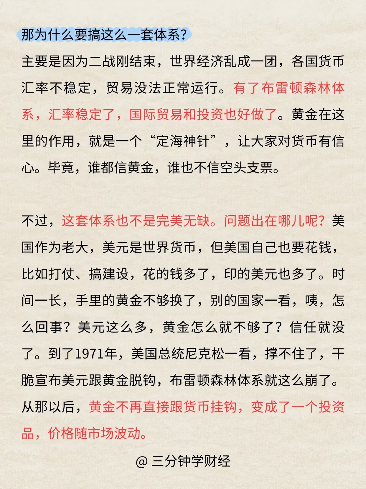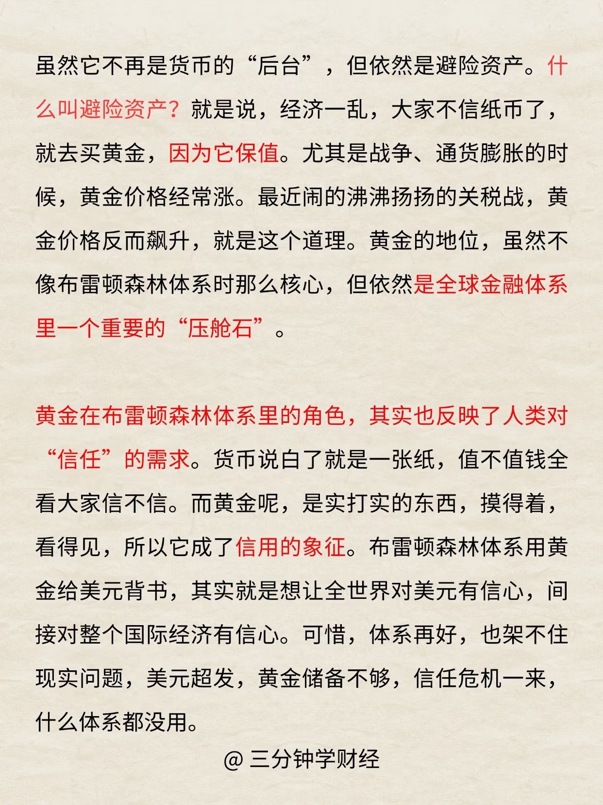 黄金是金融世界里的“老大哥”,关键时刻还是要靠它,你要是想深入了解金融史,黄金和布雷顿森林体系的故事,绝对是个绕不过去的点。
