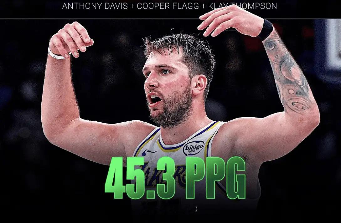 独行侠球员库珀-弗拉格(13.8分)、安东尼-戴维斯(20.8分)、克莱-汤普森(8.7分)合计:43.3分。