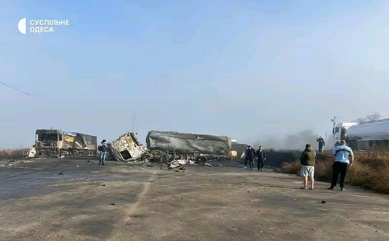 俄军够狠!在敖德萨伊兹梅尔区,直接放出“天竺葵”无人机精准摧毁乌方5辆运输燃油的大卡车!看看卡车残骸,爆炸相当惨烈!