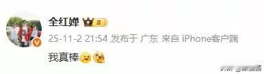 全红婵复出就夺冠! 赛后三个字直接刷屏了! 11月2号全运会跳水赛场,消失了183天的她终于回来了。 这次她没比单人项目,搭档同乡王伟莹比女双10米台,俩人配合得特别默契,直接拿了第一,还帮广东队拿下了女团冠军。 要知道,从今年5月世界杯之后,她就一直在养伤、封闭训练,没参加过任何比赛。 虽然只是团体赛里的一项,但她一出场,现场观众尖叫直接拉满。 比完赛不到一小时,全红婵就发了文,就三个字:“我真棒”,简单又实在,网友都夸这自信劲儿太圈粉了。全红婵 全红婵勇夺冠 跳水冠军婵