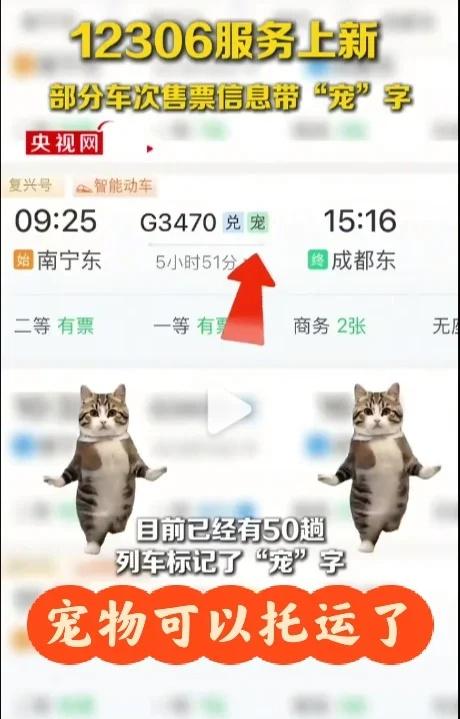 宠物托运 近日,有细心的网友发现,在铁路12306官方购票页面的部分车次信息旁,出现了带有“宠”字的绿色方框标识。记者致电铁路12306客服中心,工作人员告诉记者,这个“宠”字代表的是这列车可以办理宠物托运服务。 宠物托运 高铁出行 狗狗托运 火车票 猫咪托运 高铁 带宠物回家 带猫回家 人宠同行