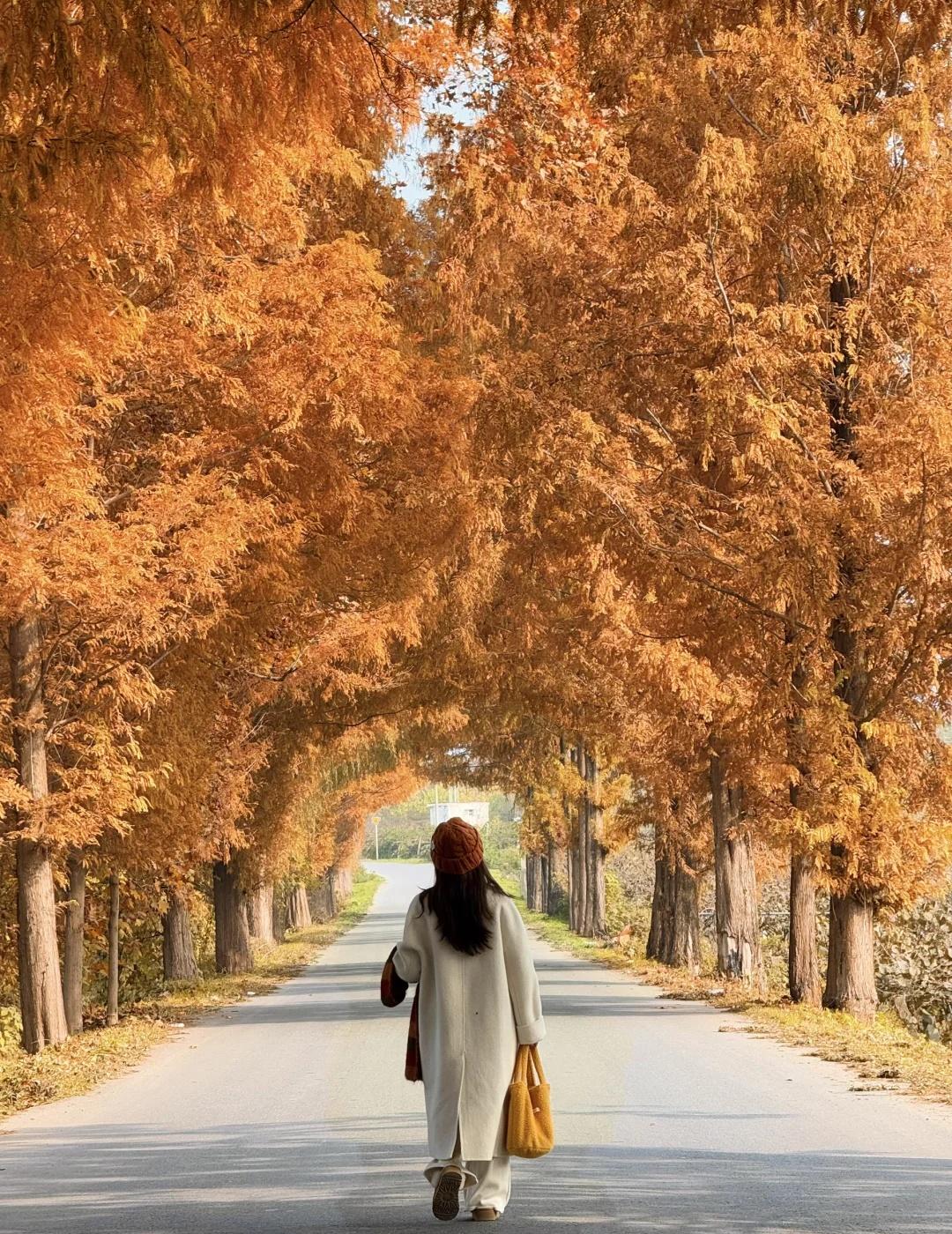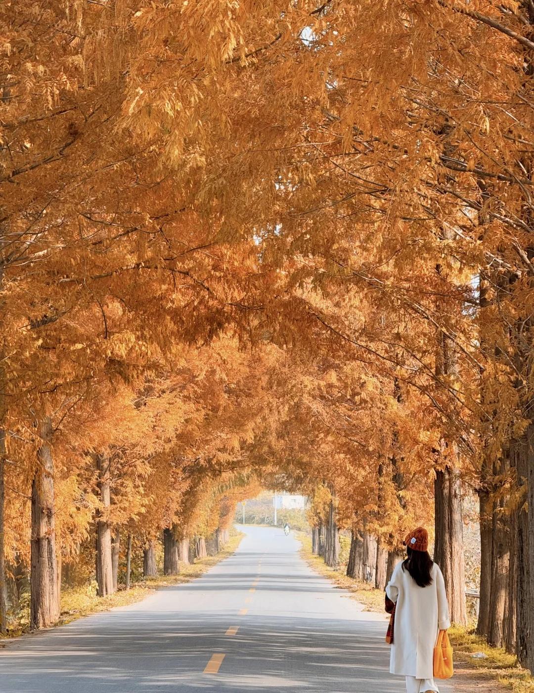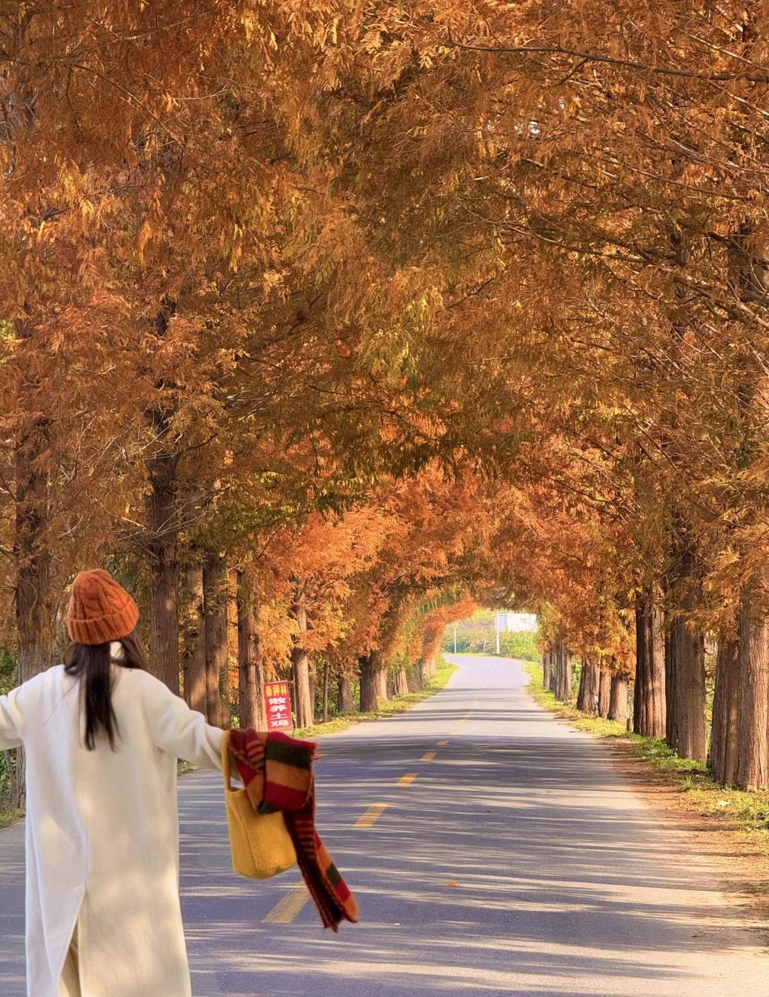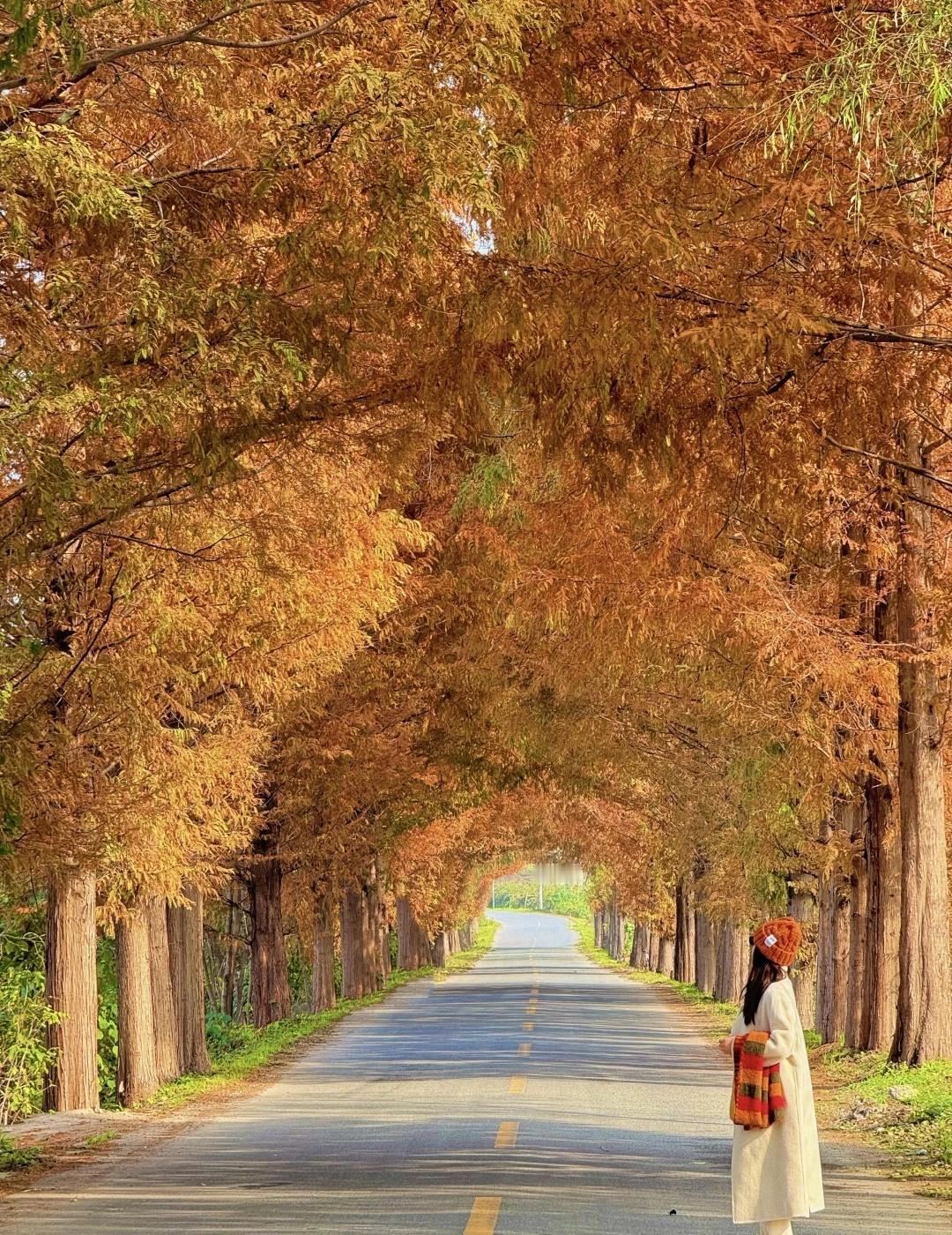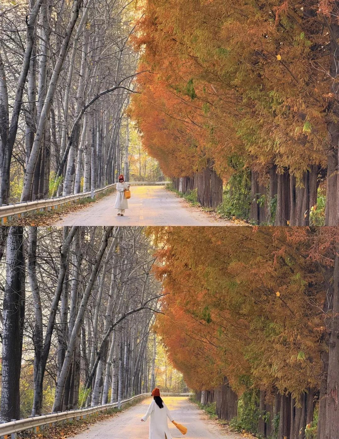 西安真的有像图上这样的地方啊!!下周快去!! 🚗西安出发1h,发现这条800米的水衫路🍂 两侧的水杉直冲天际,枝叶交织成“红色隧道” 我收藏了2年❗️11月中—12月叶子从黄变橙红 开车穿行其中像闯入油画秘境✨ 🗺️线路已经整理在p8图可提前保存: 🧭导航到周至“沙团村” 西安周边游 小众赏秋地 周末去哪儿 秋日到站计划 来拍照了 水杉 收集全世界的秋天 赏秋