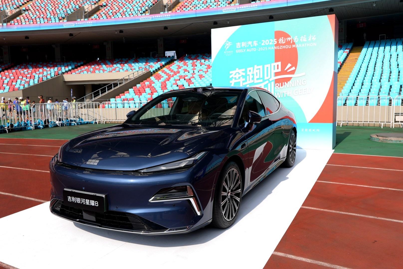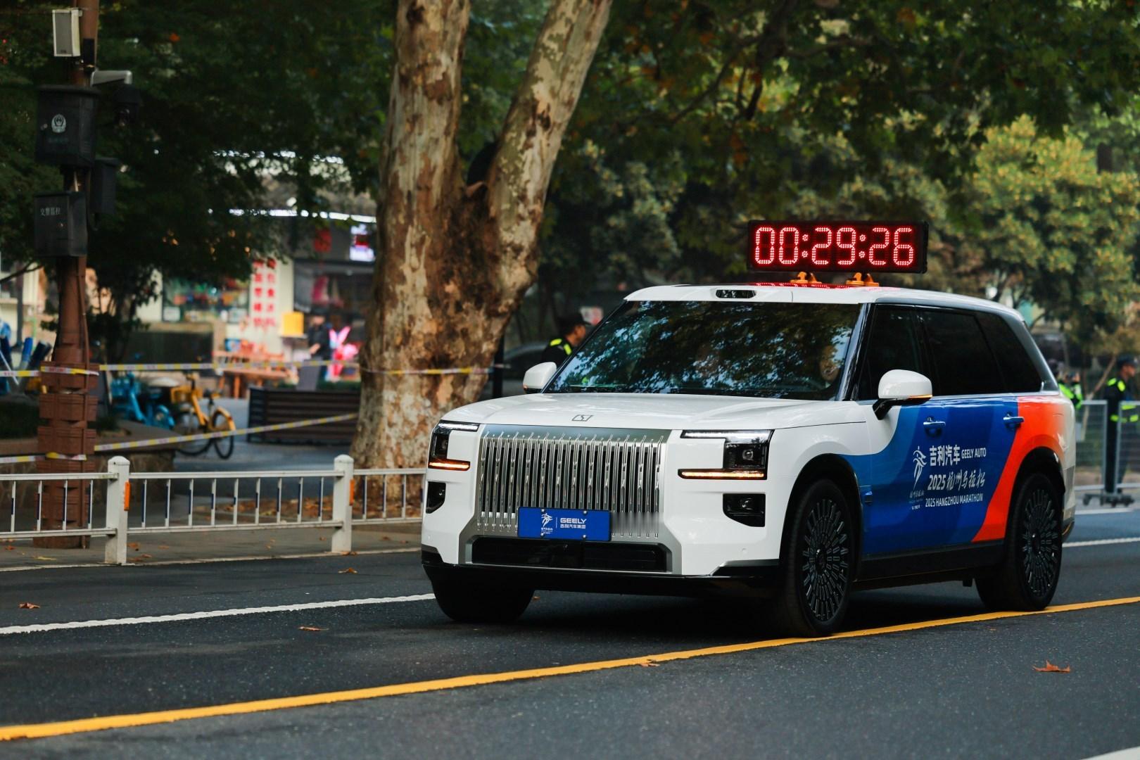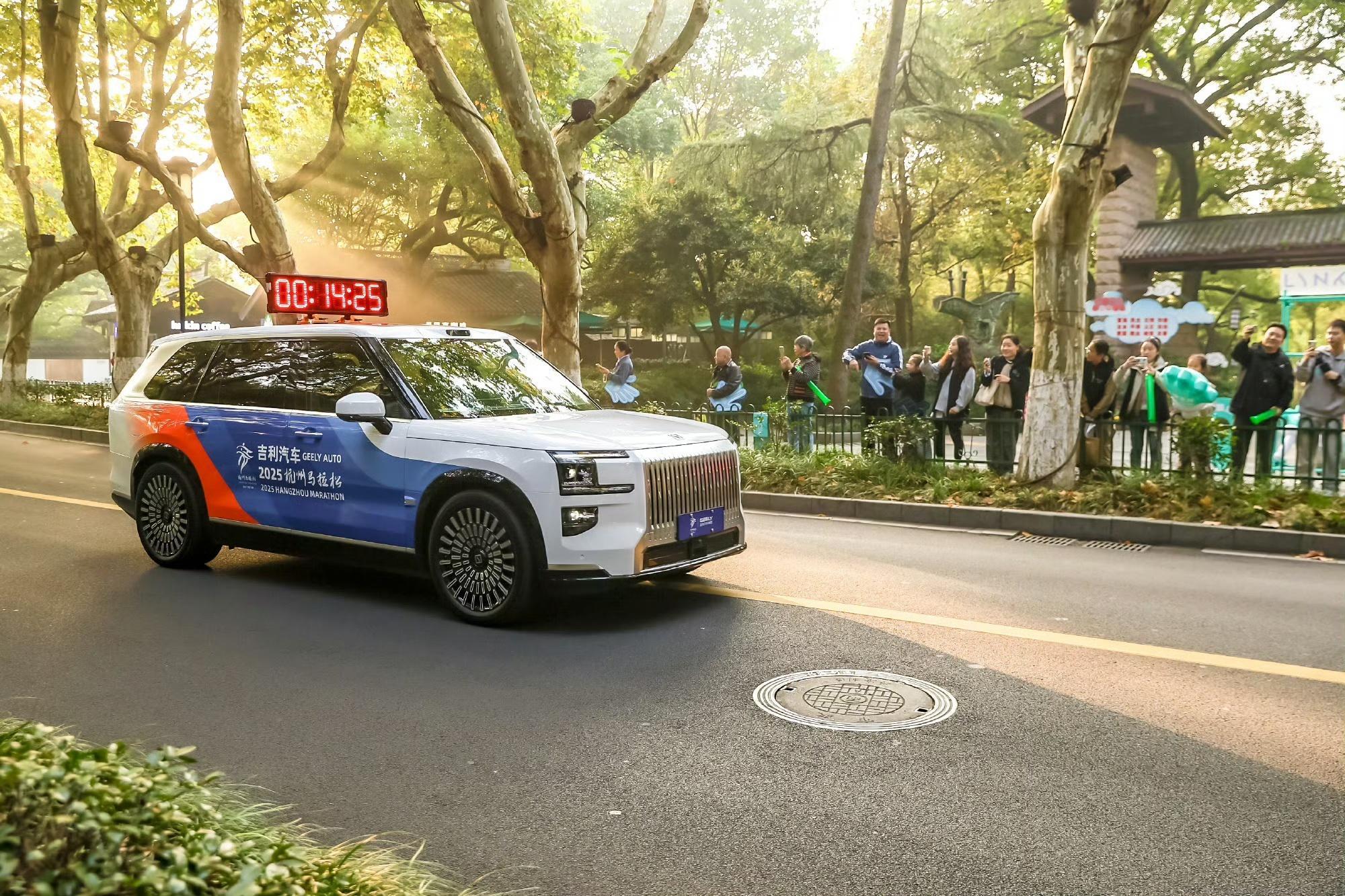 吉利汽车2025杭州马拉松奔跑吧吉利唯跑者一直向前 吉利这波赞助杭马也太给力了!作为杭州本土车企,直接把极氪、领克、吉利银河三大品牌都拉来护航,极氪9X当计时车、银河M9做保障车,还有杭产新车当冠军奖品,全场景服务拉满。