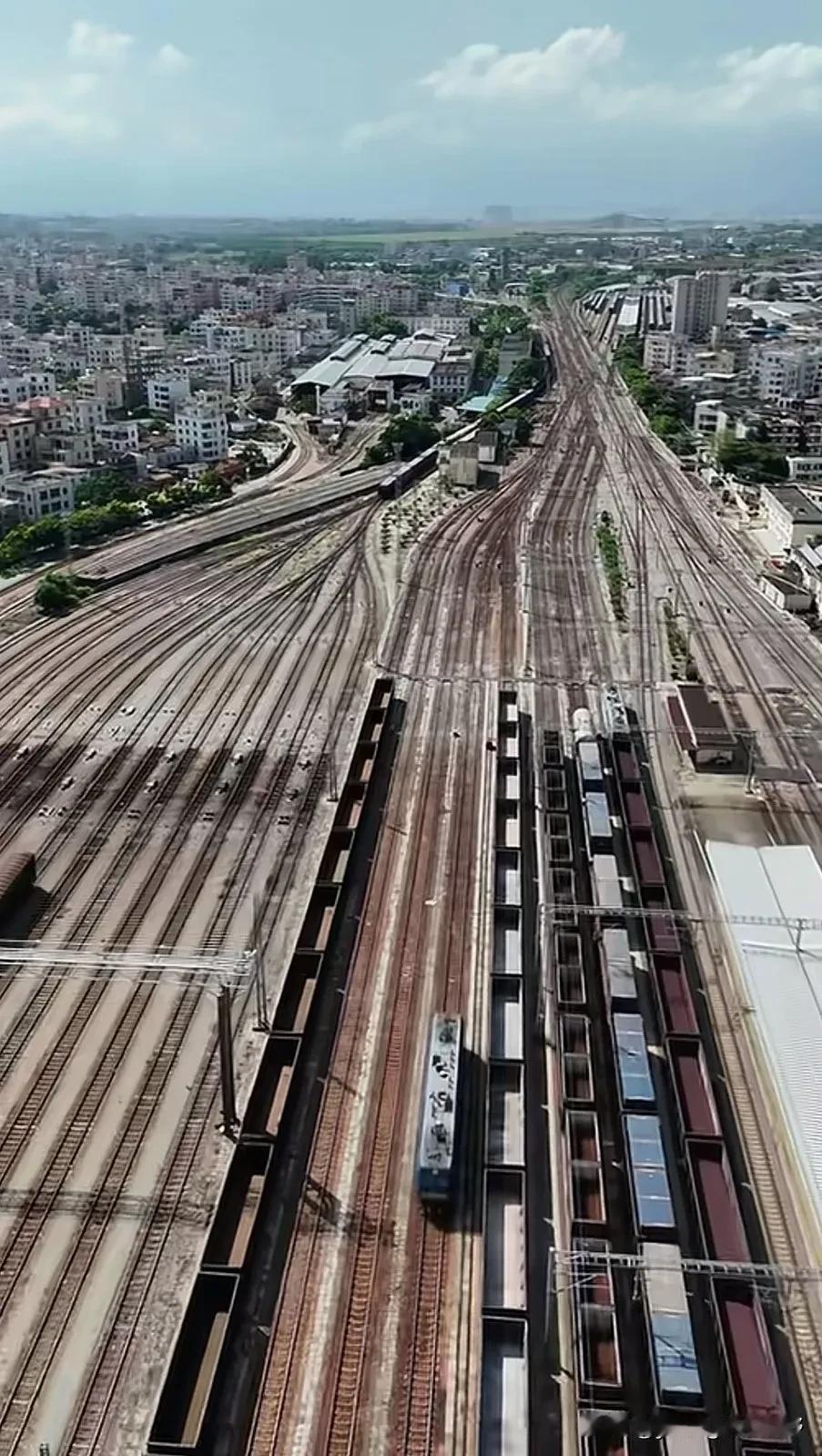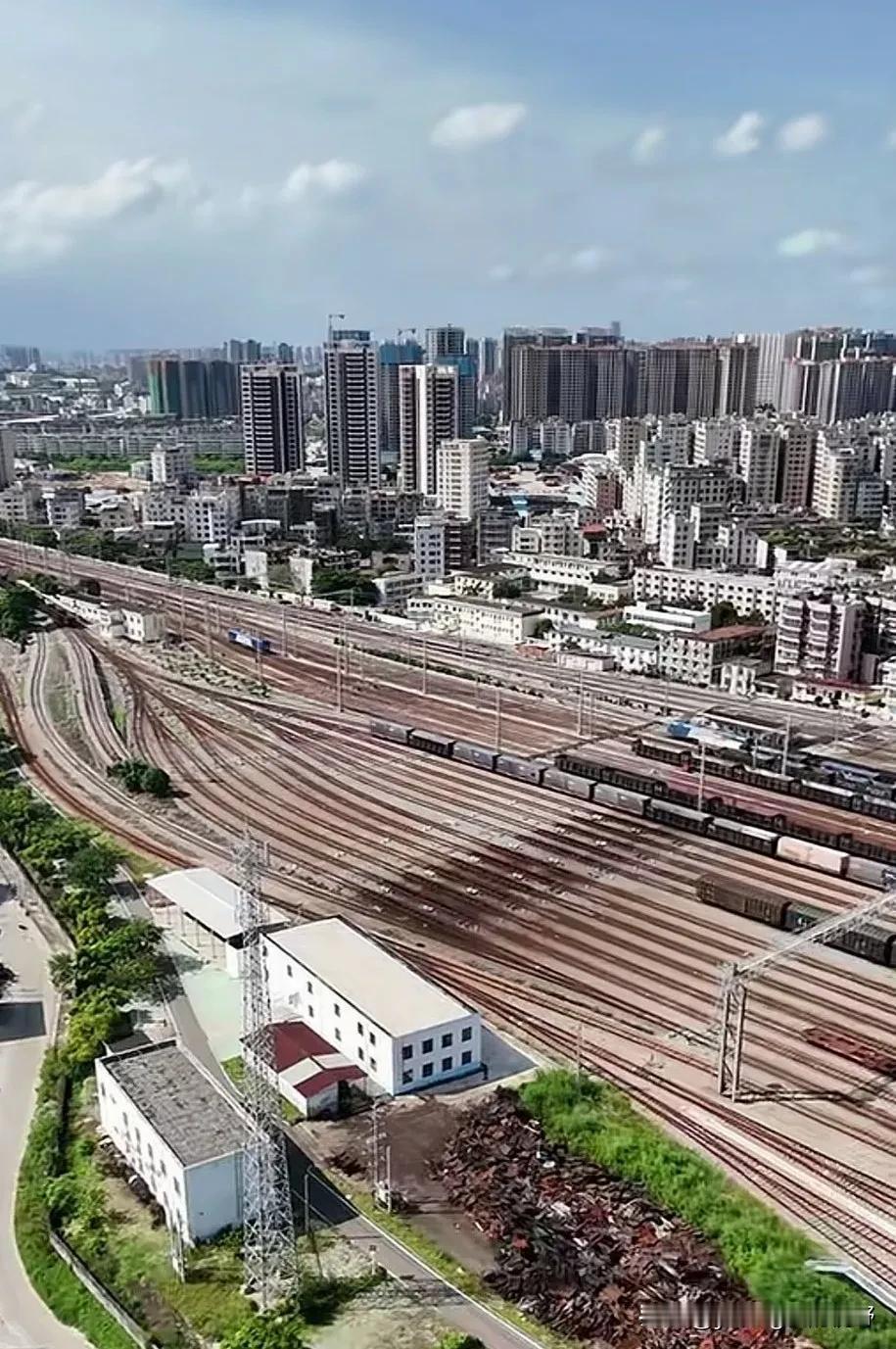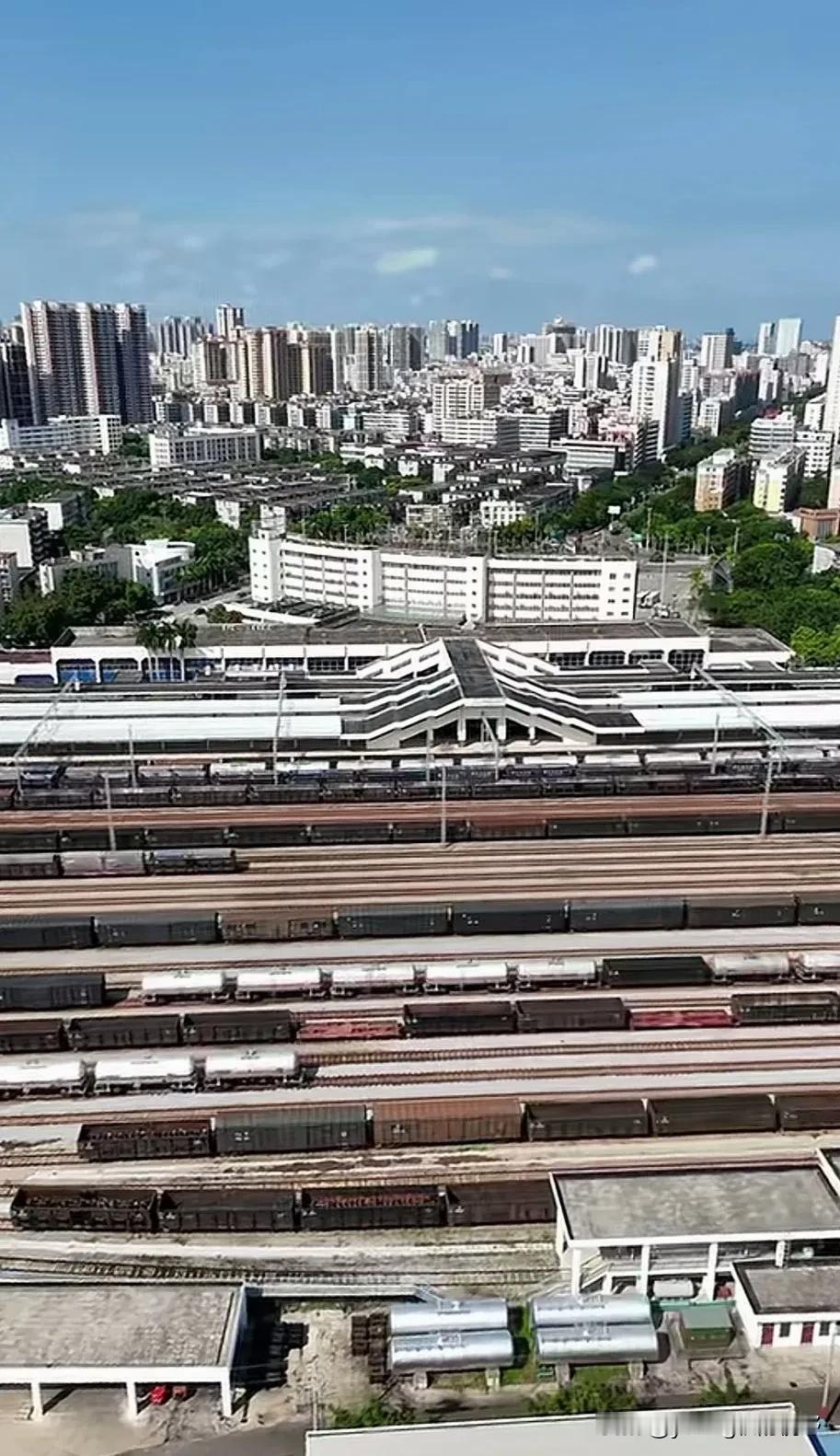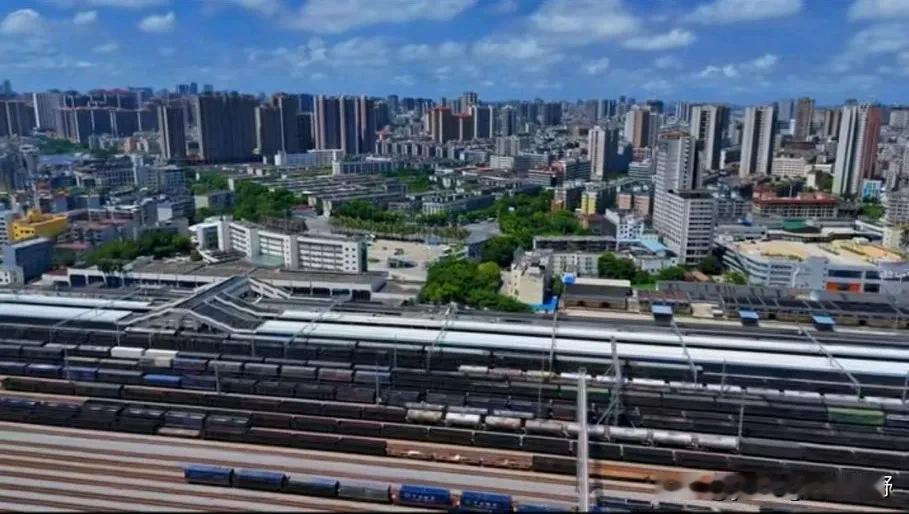 湛江火车站,曾经是柳州铁路局管理的一个最大的出海通道,广西甚至西部省份的许多货物都是沿着黎湛铁路南下至湛江港出海。所以在湛江火车站也就修建有非常大规模的铁路货运编组站场。即使是今天的南宁局在广西又新建了好几个出海通道,但湛江火车站和黎湛铁路也依然承担着重要的货物运输作用。