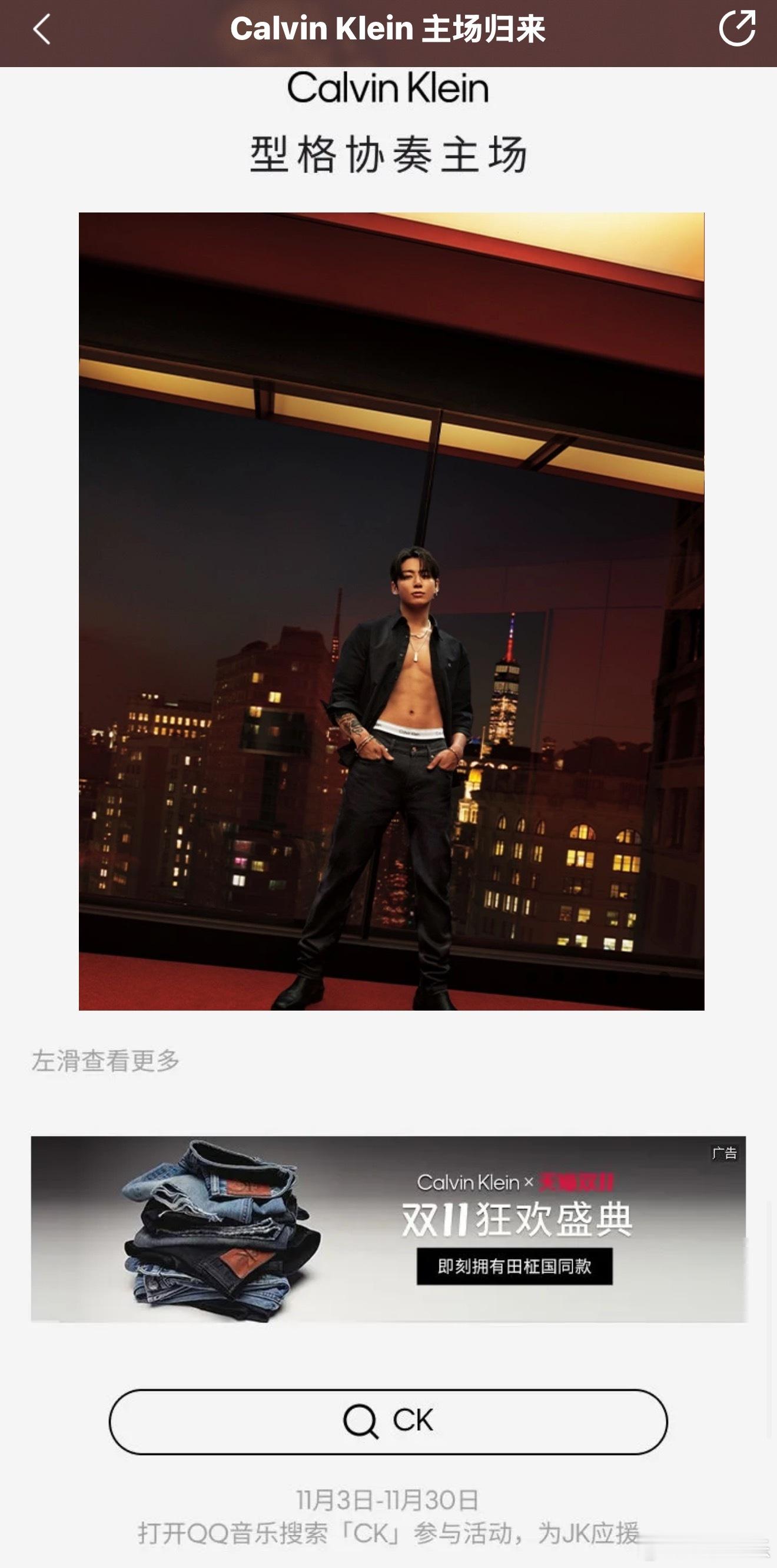 田柾国礼包排面田柾国礼包田柾国回归排面 想拥有田柾国专属福利?CK 和 QQ 音乐的回归限量礼包已上线,QQ 音乐搜 “CK” 就能抢,手慢无!