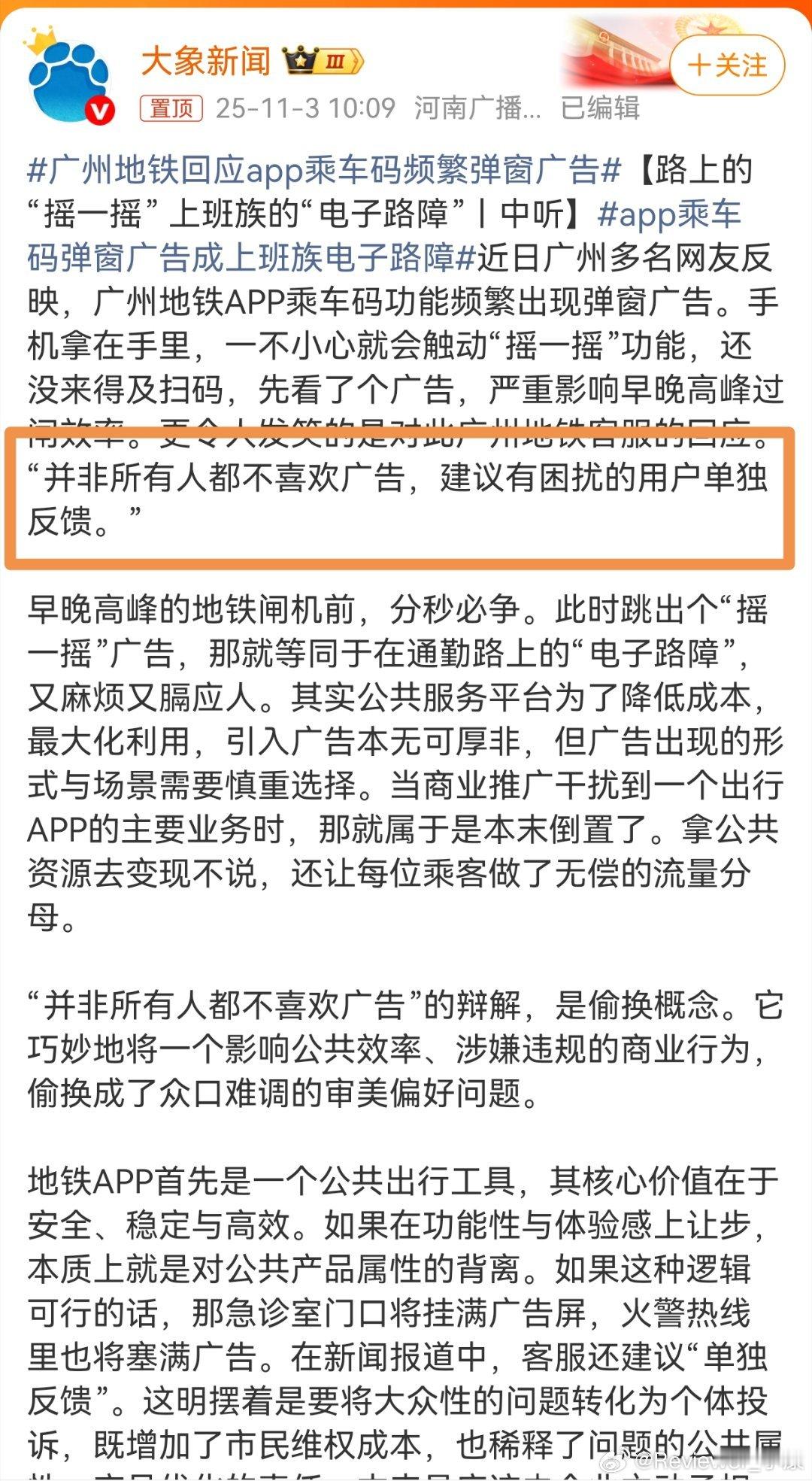 作为一个大都市,官方乘车码弹窗广告如此张扬,实在差评。