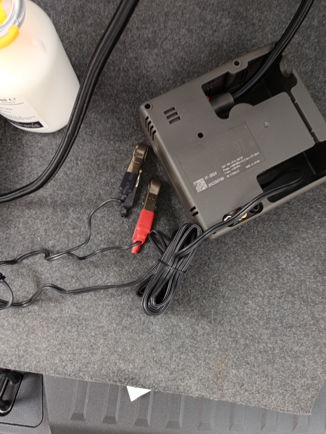 用随车气泵补气 气温在逐步回落,胎压最近冷态看已经下降到224kpa了,按照官方推荐的35psi(老美一般爱用psi这个单位,我以前开的老gl8老君威都是这个单位)或240kpa相比,已经低点了。作为个强迫症那必须要补气,正好周五下午没事,我就去停车楼了。 首先随车配的充气泵是在后备箱隔板下面储物盒最里面,取出气泵后需要再把储物盒掀起来露出电瓶。因为全车没配12V接口,气泵是夹子夹电瓶的。充气泵本身不像搭电的电瓶,也就无所谓先正后负的顺序了。夹好再把气管连到气门嘴就可以开始打气了,气泵自带的压力表已经提供了kpa和psi两种单位,精度够用。补好两个后胎该前胎了,但问题来了,电线长度不够。 考虑到只能接机舱那就应该有取电的地方,打开机盖发现在电脑版旁边红色盖子标着➕,这就是正极取电的地方,负极随便找车身搭铁就行了,这样前后胎就都补气了。 最后,全车没12V点烟器接口真的不方便,家里的气泵都闲置了。而且操作也不方便,建议还是买个锂电便携气泵类似小米那种,日常使用方便多了。 另外,在机舱里看的时候找到进气口的位置了,就在中网左侧(面对车头),根据离地高度大家以后注意一下涉水时候速度一定要慢别激起浪来。
