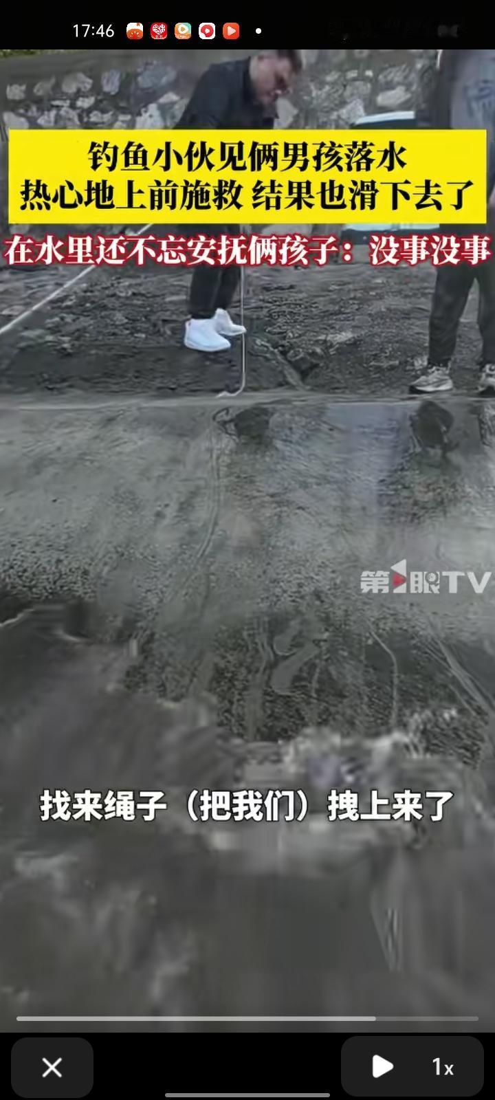 11月2日,江苏宿迁。钓鱼小伙见两男孩落水,热心上前施救没想到滑下去了。落水男孩一个12岁,另一个14岁,两男孩骑自行车到湖边玩,其中一个不小心滑下去,另一个去拽他也滑下去了。小伙看到后,就想用控鱼器把它们拽下来,才发生这一幕。最后,边上有一个大哥找来绳子把他们救上来了,两男孩没事,就是受惊吓了。