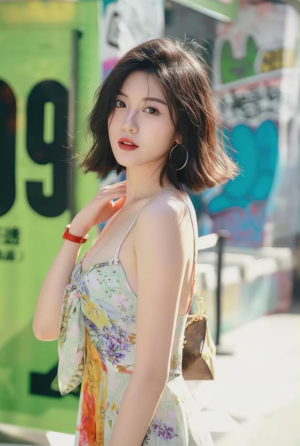 阳光明媚的街头,甜美少女与涂鸦墙的完美邂逅🌞💕