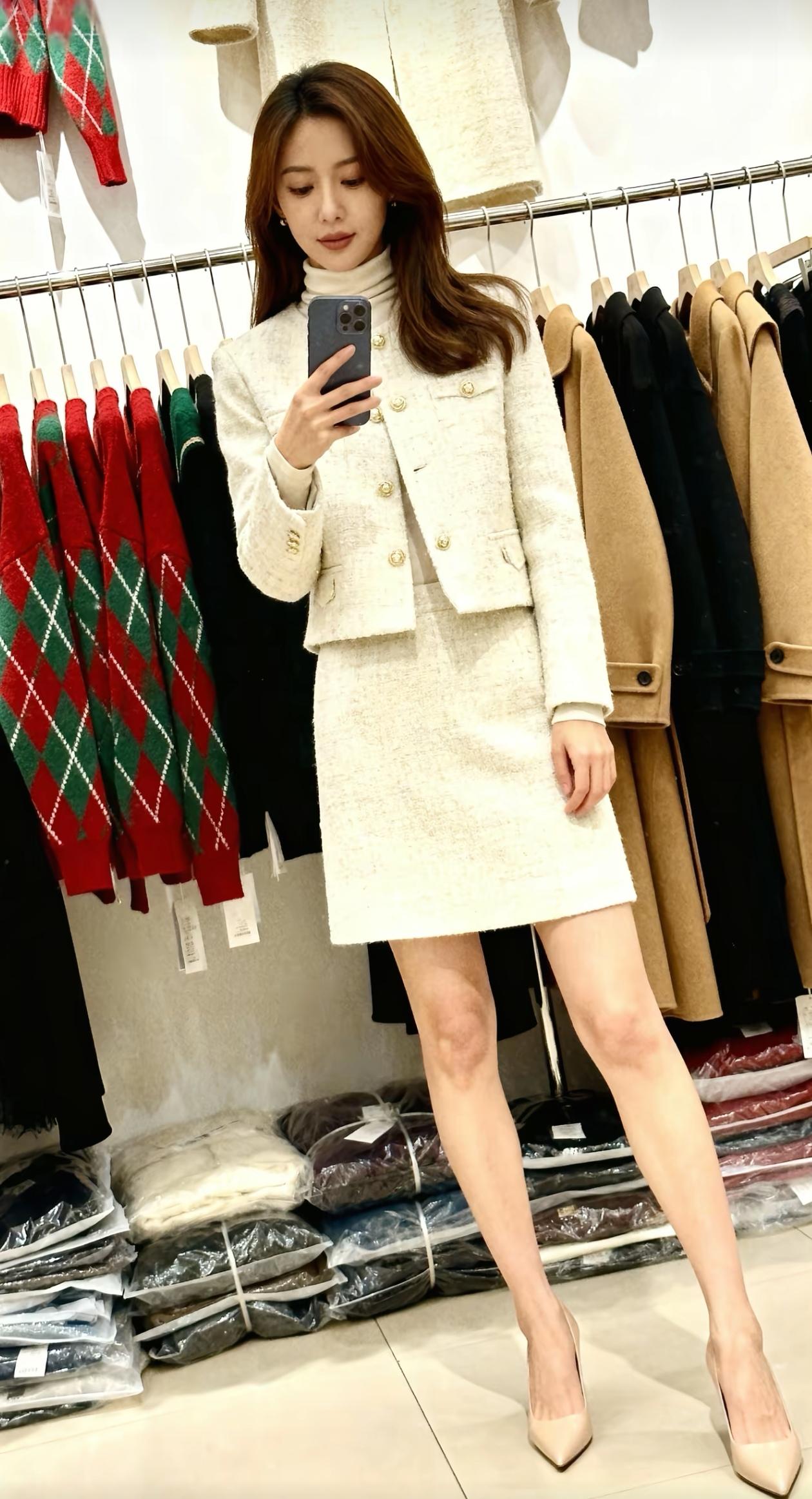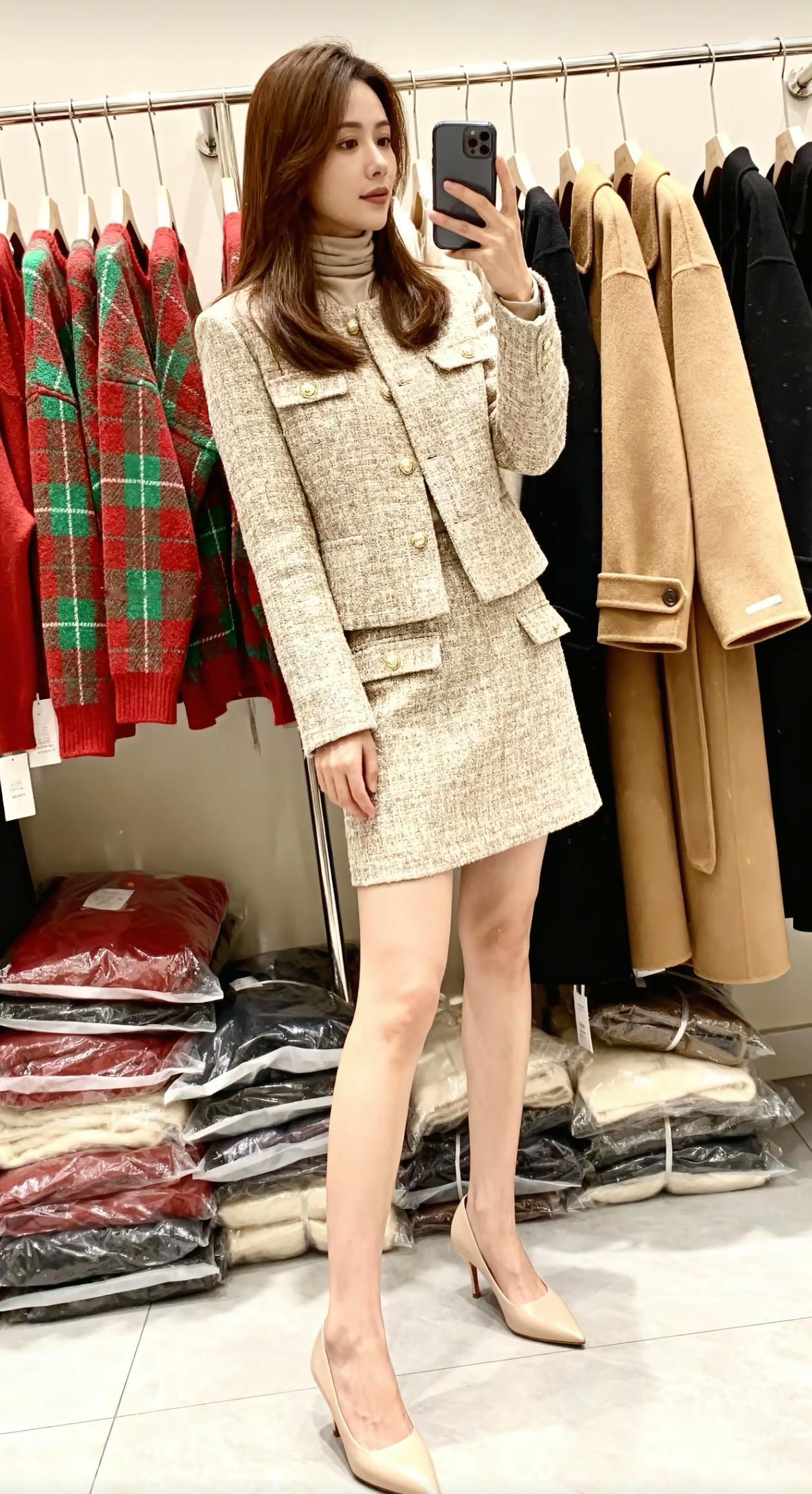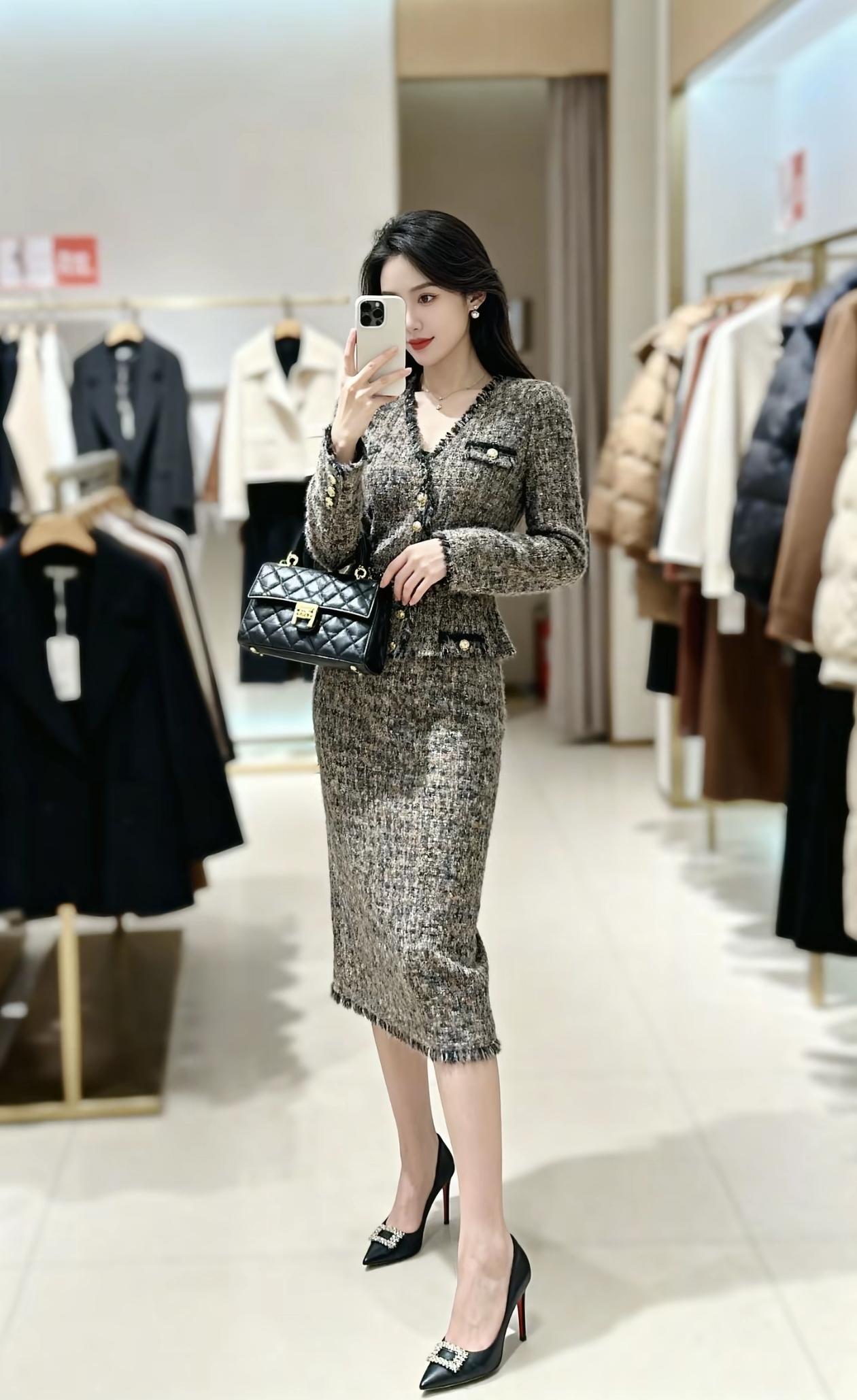 优雅穿搭指南:灰色西装裙搭配黑色高跟鞋,尽显都市女性魅力!👠💄👗