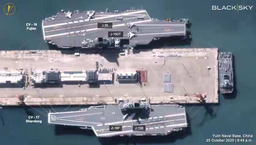 10月25日,美国BlackSky公司拍摄的一张高分辨率商业卫星照片,画面显示,在海南三亚军港的泊位上,中国第三艘航空母舰“福建舰”和“山东舰”并排停靠。而福建舰的甲板上,罕见地摆放着整整7架舰载机——包括歼-35隐身战斗机、歼-15DT多用途战机、空警-600舰载预警机以及直-9、直-20等型号的直升机。哇,小编欢呼,福建舰终于要“服役”了。很气派,又很酷,最重要的是这就是我们东方大国的风采。当我们有如此防御,全民如此高的安全感,红日正在东方冉冉升起。战斗机排列成行,空警直升机威武庄严,似向世界宣告我们在变得越来越强大,永远告别了曾经的病弱。我们的同胞们都团结一心,在各行各业不停突破,书写一个又一个神话。这就是我们华夏民族生生不息,千秋万世的决心。大家都说对不对啊?(图片来源于网络)福建舰 福建号航母 航母航行 空警600