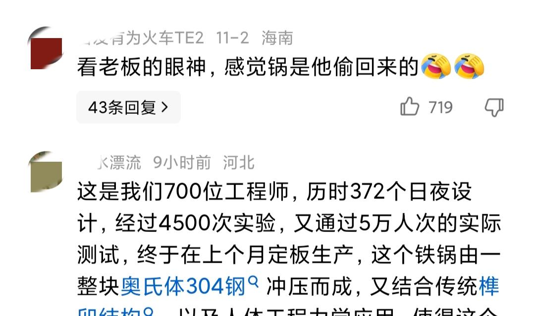 真是让人笑不活了,看到瑞安不锈钢锅老板,在介绍自己的锅时,眼神躲躲闪闪,甚至有些紧张不安,网友还以为他手里的锅是“偷来”的。 评论区里简直让人要笑死! 有些网友建议他参考下雷总的发言,也有网友正切地给出了自己的建议! 更多的网友表示,老板一看就是老实人,虽然没有慷慨激昂,但是看着让人踏实!