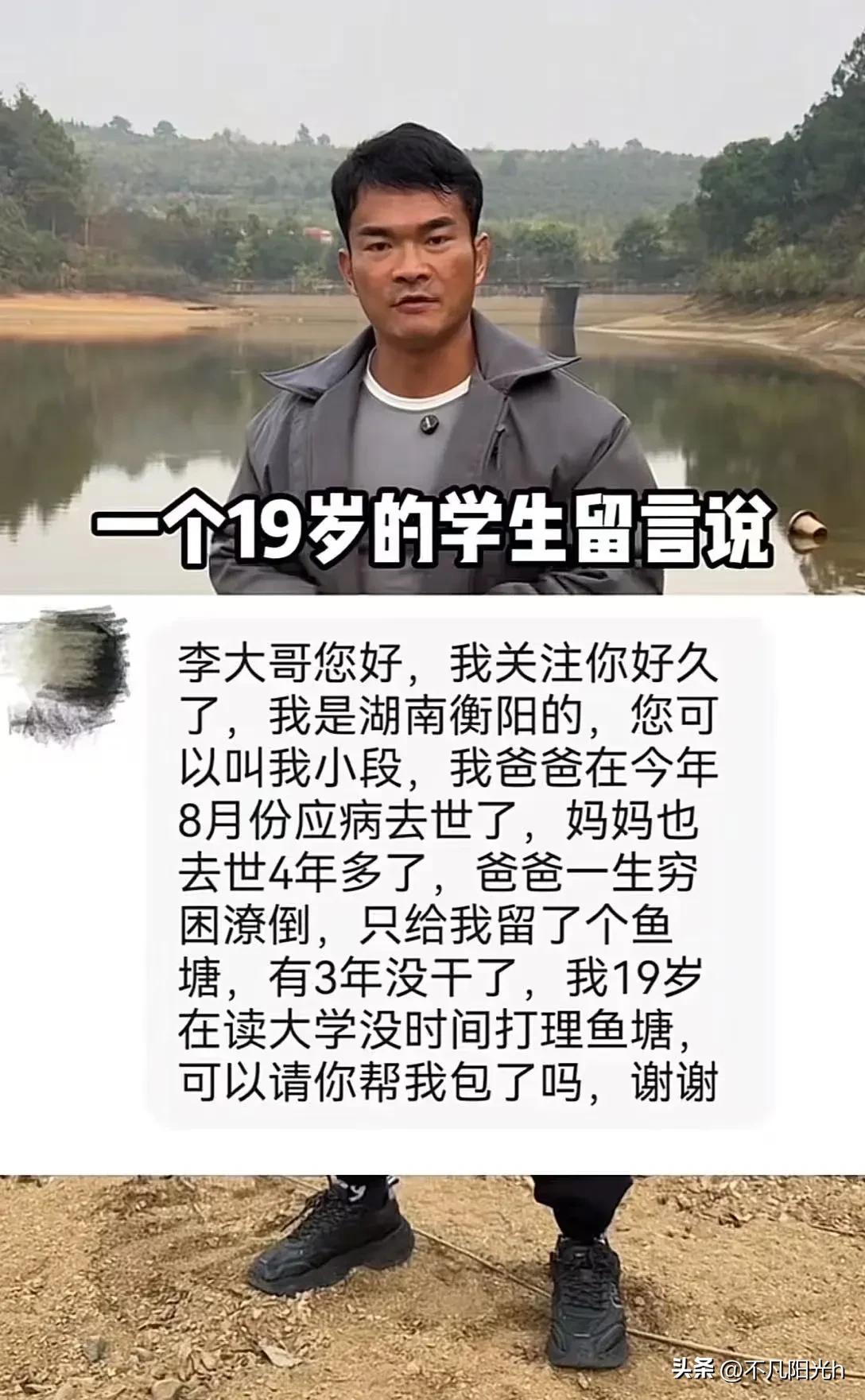 这个故事让我深受感动,也让我感受到人性中最温暖、最善良的一面。故事的主人公是湖南衡阳一位19岁的男孩,他的生活充满了艰辛与不幸。父亲因病去世,母亲也在他年幼时离开了他,留下他孤身一人。父亲一生贫困潦倒,唯一留给他的遗产是一片鱼塘。虽然生活如此艰难,但这个男孩依然坚持梦想,渴望通过读书改变自己的命运。 为了筹集学费,他不断努力打工,甚至向社会寻求帮助。一天,他在网络上恳求一位博主帮忙花5080元买下他的鱼塘,希望用这笔钱支付学费,继续他的求学之路。这个请求充满了无奈与希望,也展现了他对未来的渴望。 令人感动的是,这位博主被男孩的故事深深打动了。面对一个孤苦无依、坚强不屈的年轻人,他没有犹豫,而是决定帮助他。博主表示:“就算亏了,我也愿意帮他一把。”这份善意温暖了无数人的心,也让我们相信,在这个世界上,善良和爱心依然存在。 最终,博主成功帮男孩买下了鱼塘,不仅为他解决了燃眉之急,也为他打开了一扇希望之门。这个故事传递出一个强烈的信念:无论生活多么艰难,只要心中有希望,就有无限的可能。那些愿意伸出援手的人,像博主一样,用行动温暖了一个年轻人的未来,也温暖了我们每一个人的心。 这个故事让我深刻体会到,善良是一种力量,它可以改变一个人的命运。每个人都可能遇到困难,但只要有人愿意伸出援手,就能带来希望和光明。希望社会上能有更多像这位博主一样的善良人士,让爱与希望在每一个角落生长。也希望这个年轻的男孩,能在未来的道路上坚持梦想,勇敢前行,用自己的努力回报那些曾经帮助过他的人。 这个故事让我们相信,善意和爱心是这个世界最宝贵的财富。它们能穿越阴霾,带来温暖,激励我们每一个人都成为一个更有爱心的人。愿所有像他一样的孩子,都能在爱与希望中成长,迎来属于自己的光明未来。