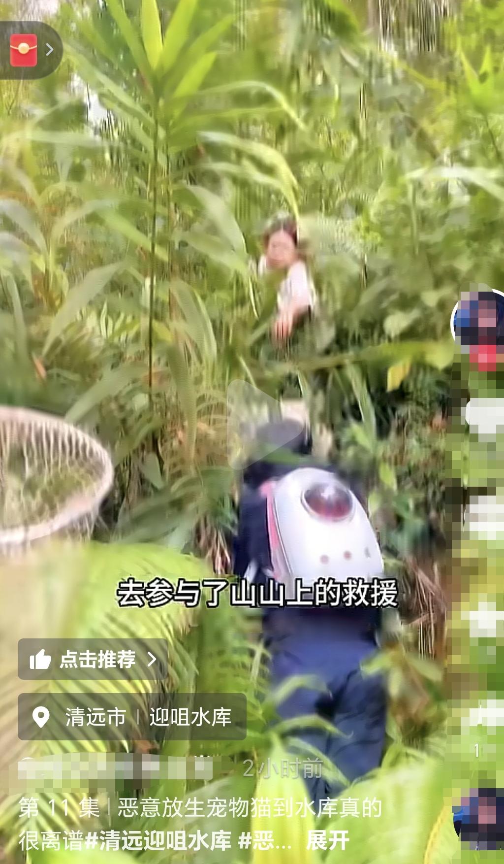 清远水库边上恶意放生的猫有很多爱心人士已经参与了救援了,给这些爱心人士点赞👍 我刚刷到的这个博主,拍了一些救援过程,他们在山里走了半个多小时才发现第一只猫,而猫看起来就像家养的,虽然落魄了,但身上很干净,不像“放生者”说的流浪猫,现场还有很多很精美的宠物猫,感觉像是被人偷走的那种 现场救援的人真的很多,虽然有的猫已经应激跳进水库死了,但爬上树,钻进草丛里的还是有一部分,志愿者们会将活着的带到救助点救助它们,也算了功德一件了! 但这里面也不知道会不会出现一些人 打着救援抓猫卖?你们怎么看?