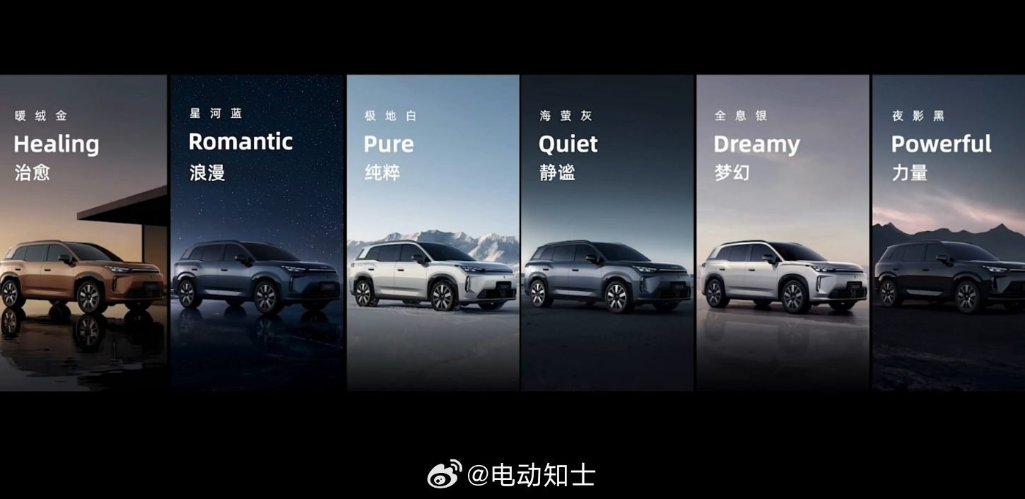 零跑D19的外观配色:松谷绿、液态银、金属黑、天幕灰和光电白。 绿色...