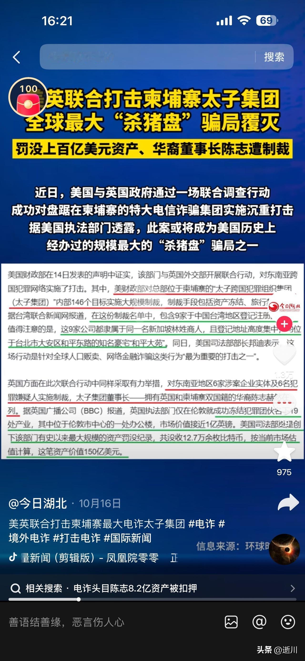 近期全球都在追杀太子集团的诈骗资金,但我国却异常安静🤫。英美两国罚没进百亿美元资产,董事长陈志跑了,至今下落不明。针对此事,大家怎么看?