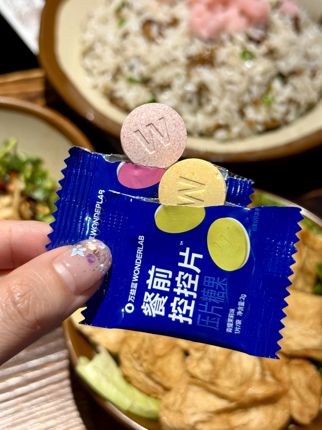 管理期被健身闺蜜按头安利的糖🍬 真的打开了新世界大门!! 上周部门聚餐吃了酸汤火锅、炸串和蛋糕🍰 外卖商战…还喝了好几杯奶茶🥤 餐前偷偷吃了2片(柠檬西柚味和青提茉莉都挺好吃! 第二天居然…稳如老狗??? 同事都在问链接!!其实就是万益蓝的餐前控控片啦,查了成分表确实够硬核👌每两片含有1500mg的白芸豆提取物和1200mgL-阿拉伯糖可以🔫淀粉、蔗糖 大餐后不涨真的谢天谢地了😭 独立包装很便携~现在已经是包包常驻嘉宾了👛 奶茶蛋糕的快乐我都要!