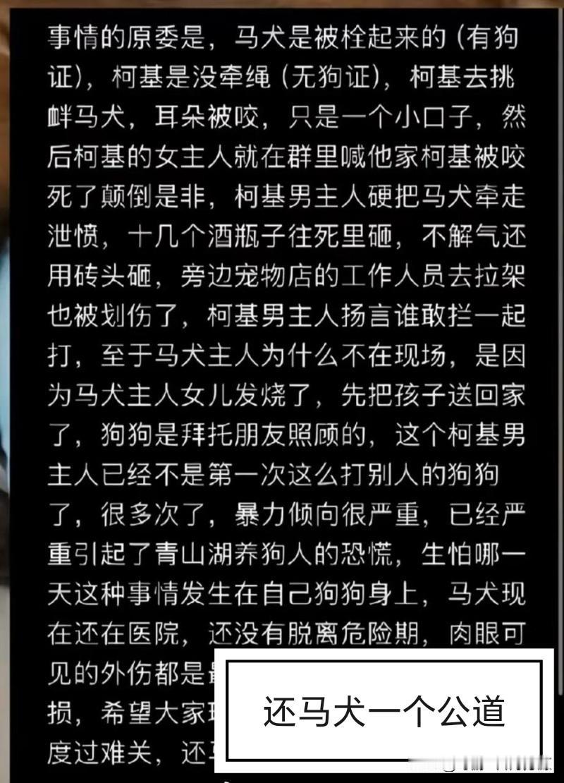 浙江男子因柯基被咬伤泄愤 当街用酒瓶砖头狂砸马犬被立案 2025年10月29日傍晚,浙江杭州临安区青山湖街道星港路发生一起过激打狗事件,引发社会关注。 当日,苗某某与女友刘某某遛未拴绳的柯基犬时,柯基与拴在树上的马犬发生撕咬,导致柯基耳朵受伤。二人将柯基送至附近宠物医院,得知其耳朵咬伤“永久无法恢复”后,苗某某情绪失控,将马犬带至宠物医院门口泄愤。他接连用路边石头、板砖砸击马犬,还脚踹、酒瓶猛砸,马犬惨叫声持续不断。期间,一旁宠物店工作人员上前拉架被划伤,苗某某还扬言“谁敢拦一起打”。 事发后,马犬被紧急送医抢救,检查显示其内脏严重受损、肺出血,处于危险期。涉事男子当日被警方带走,11月1日青山湖街道办事处发布通报,明确公安机关与综合行政执法部门均已立案调查。民警表示,案件处理将依据马犬救治结果而定,若马犬不幸死亡,处理方式会相应调整,目前事件仍在进一步调查中。 内容有AR形成