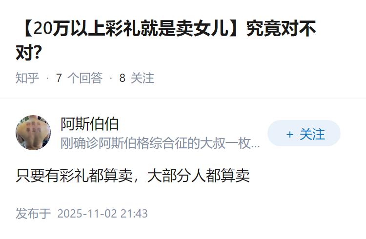 【20万以上彩礼就是卖女儿】究竟对不对?