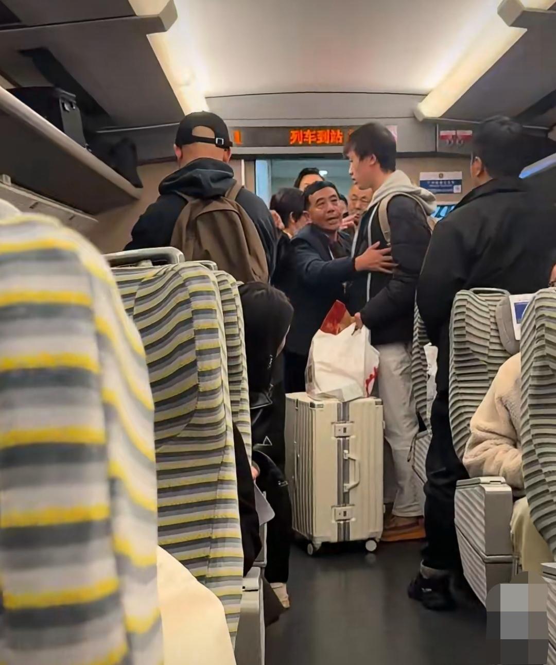 列车上,光头大爷坐了高个小伙子位置,还让小伙子要做好事。边上大哥还在那里劝小伙子…… 视频中,这应该是一等座车厢,按道理是不可能混进去没有票的,也不知道这位光头大爷是怎么混进去的,可现场明明有工作人员啊! 要我说,遇到这样的人,也不要跟他多废话,跟他说一次就够了,省的给自己添堵,直接找乘务人员,如果乘务人员第一时间不给解决,就投诉乘务人员。我就不信乘务人员不给解决! 大家说是不是这个道理?