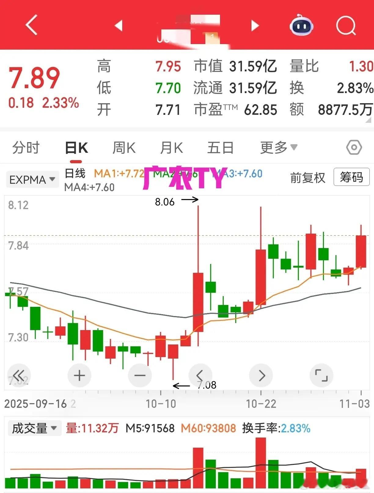 再看广农,走势也挺有意思,有没有点短期上升三角形的味道?不过这个形态时间还不够长,后续能不能发力,还得接着观察。